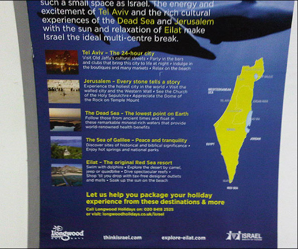 IslamOnline.net & News Agencies 23 May 2009 LONDON — Floods of complaints have forced the Israeli government to withdraw tourism posters from London Underground for featuring a map that treating the occupied Arab lands as part of Israel.