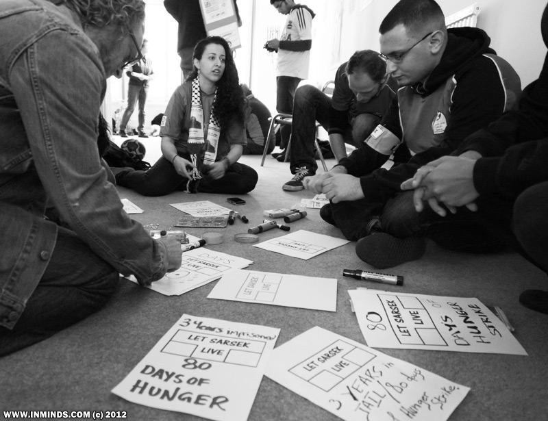 Mahmoud Sarsak and Akram Rikhawi who have been on hunger strike for 78 and 59 days respectively issued the following urgent distress call from Israel’s Ramle prison today. It was published by Addameer on its Facebook page in Arabic and rush-translated by The Electronic Intifada: