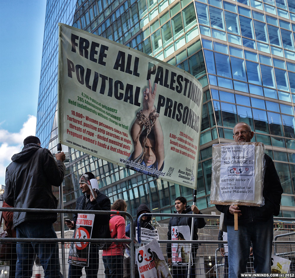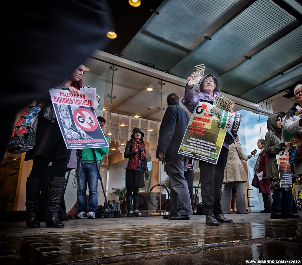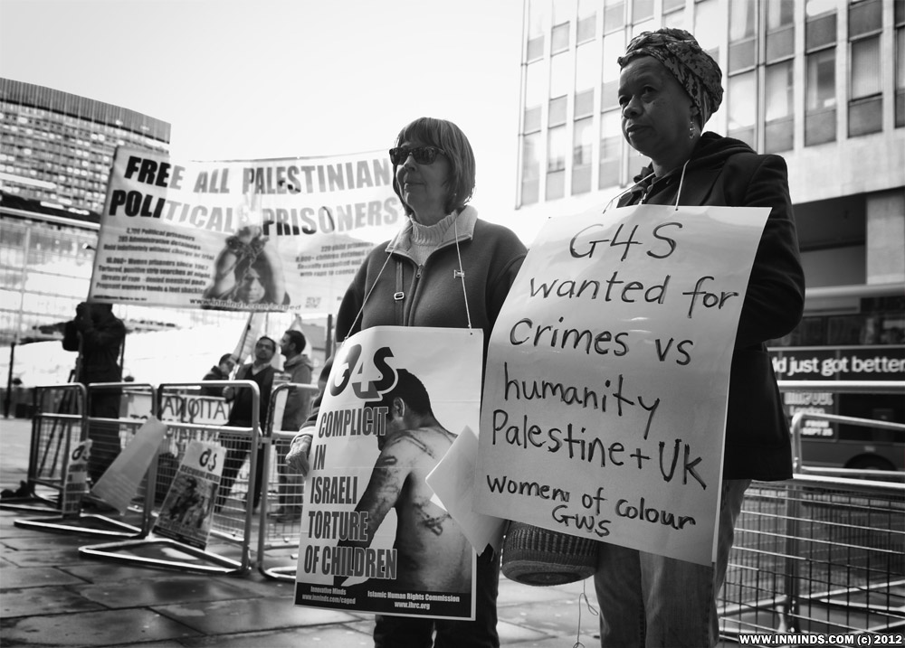 inminds 14 October 2012 Friday 12th October saw Palestinian rights activists picket the entrance of the security firm G4S' headquarters in London to protest at the company's complicity in the torture and caging of Palestinian children.