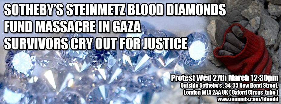 [Boycott - Other News] Alert: Protest - Sotheby's Steinmetz Blood Diamonds Fund Massacre in Gaza