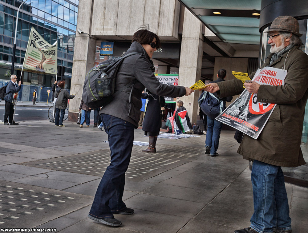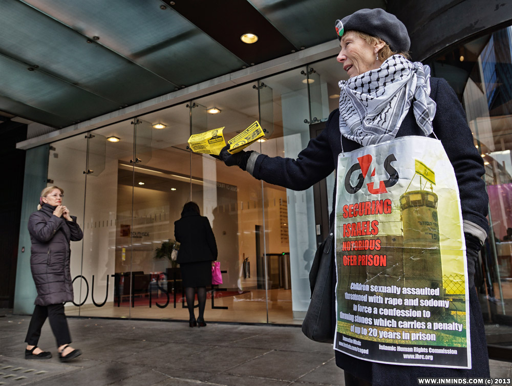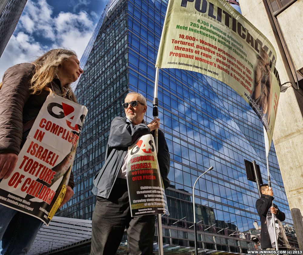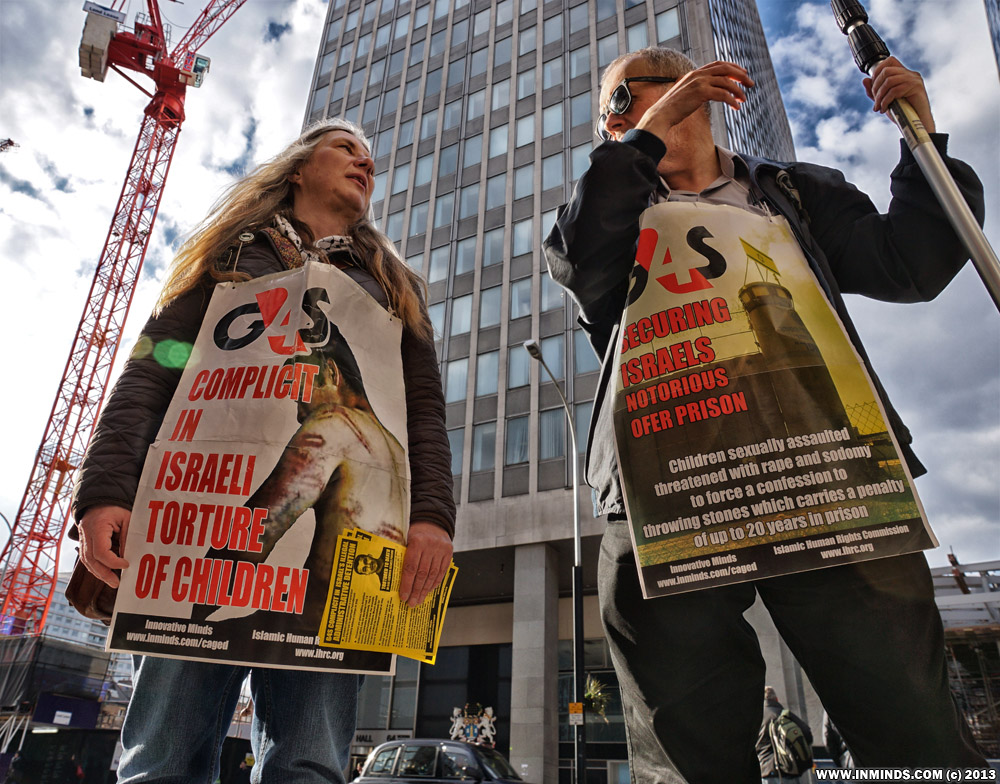 inminds 21 April 2013 As part of Palestinian Prisoners Day commemoration on Friday 19th April 2013 activists targeted G4S for its complicity in the torture of Palestinian children; and in Israel's illegal system of Administrative Detention.