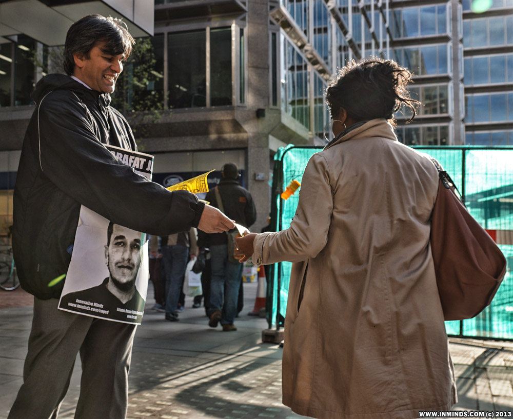 The public were really receptive to our message with many people stopping to read each information poster on G4S and its complicity in the torture of Palestinian children and the recent torture to death of Arafat Jaradat in a G4S secured Israeli dungeon. Our leaflets this week explained G4S's complicity in Israel's illegal practice of indefinite imprisonment without trial called Administrative Detention. They were very popular and we quickly ran out.