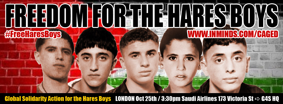 We will, inshAllah, be tweeting live (hash tags #FreeHaresBoys #ShameOnSaudi ) from the protest with live photos being uploaded to our twitter and facebook page. So if you can't join us on the day, please help us by sharing the photos as they get uploaded.