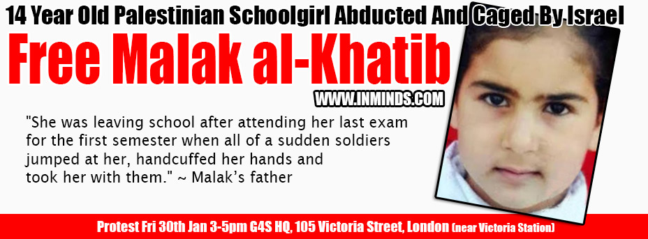 [Other] Alert 30th Jan 2015 - Free Malak al-Khatib - 14 year old Palestinian schoolgirl abducted and caged by Israel