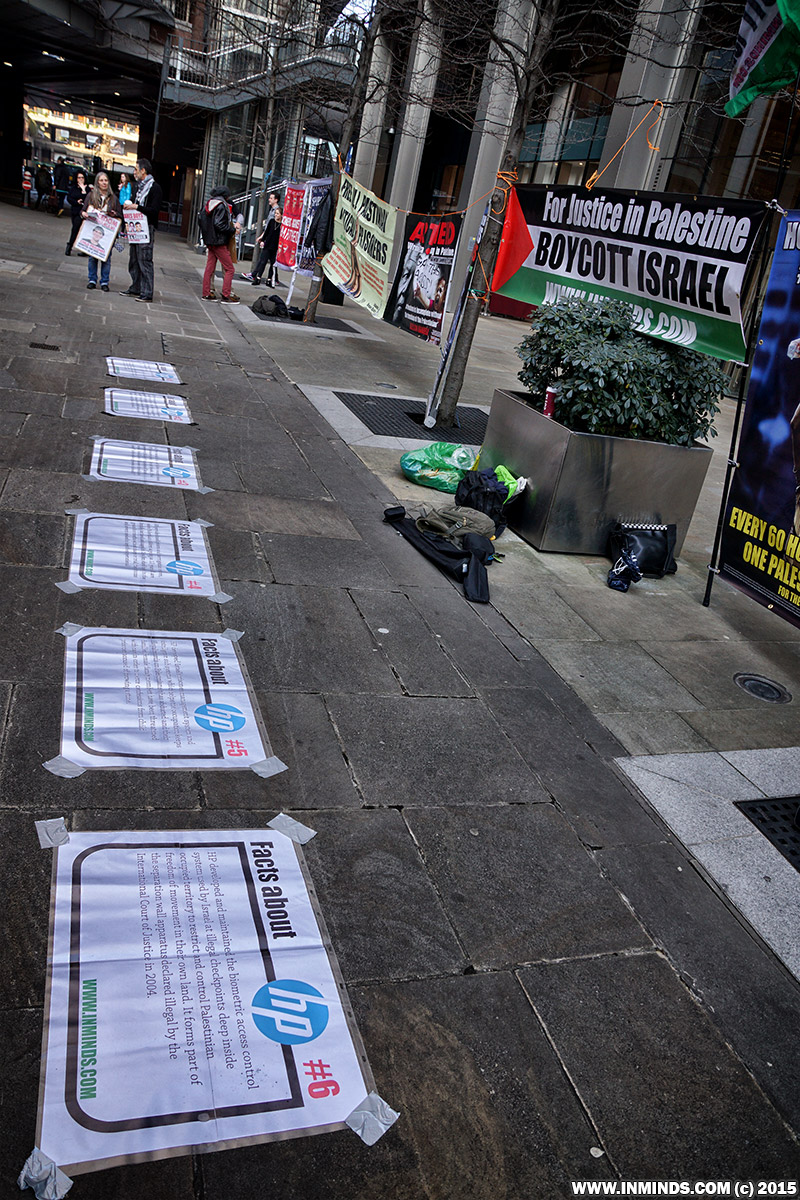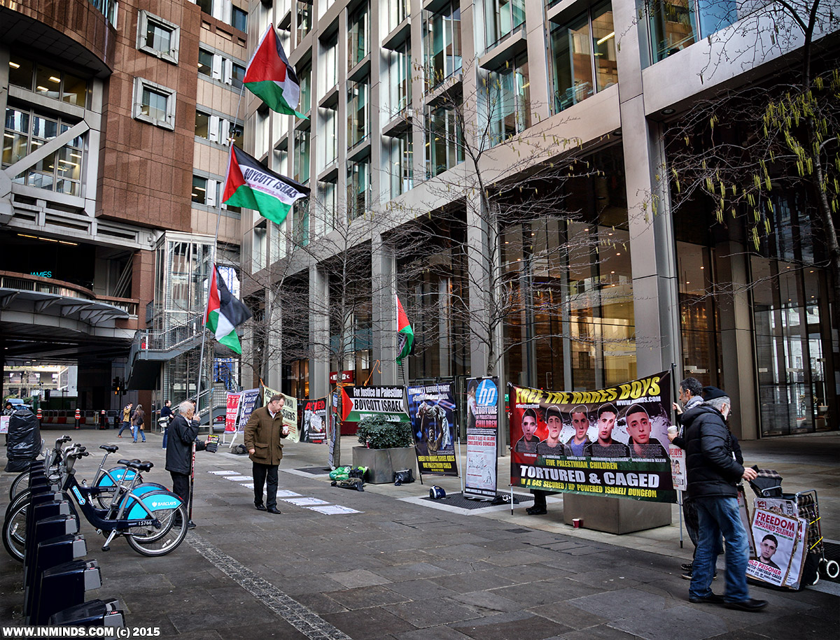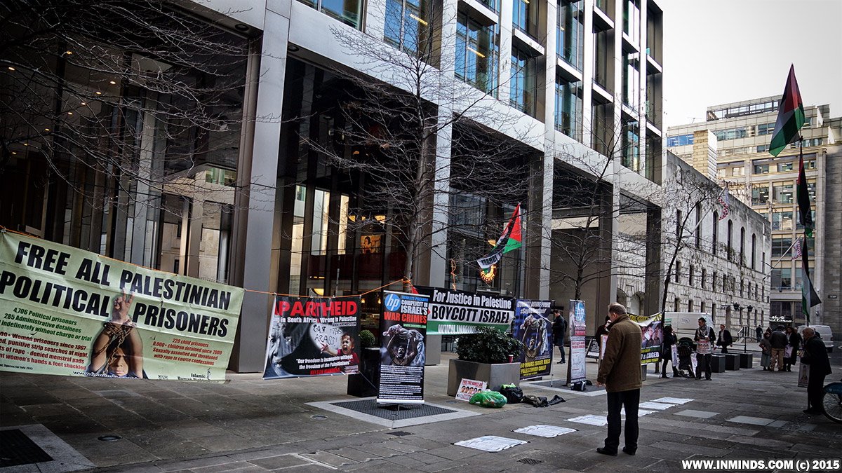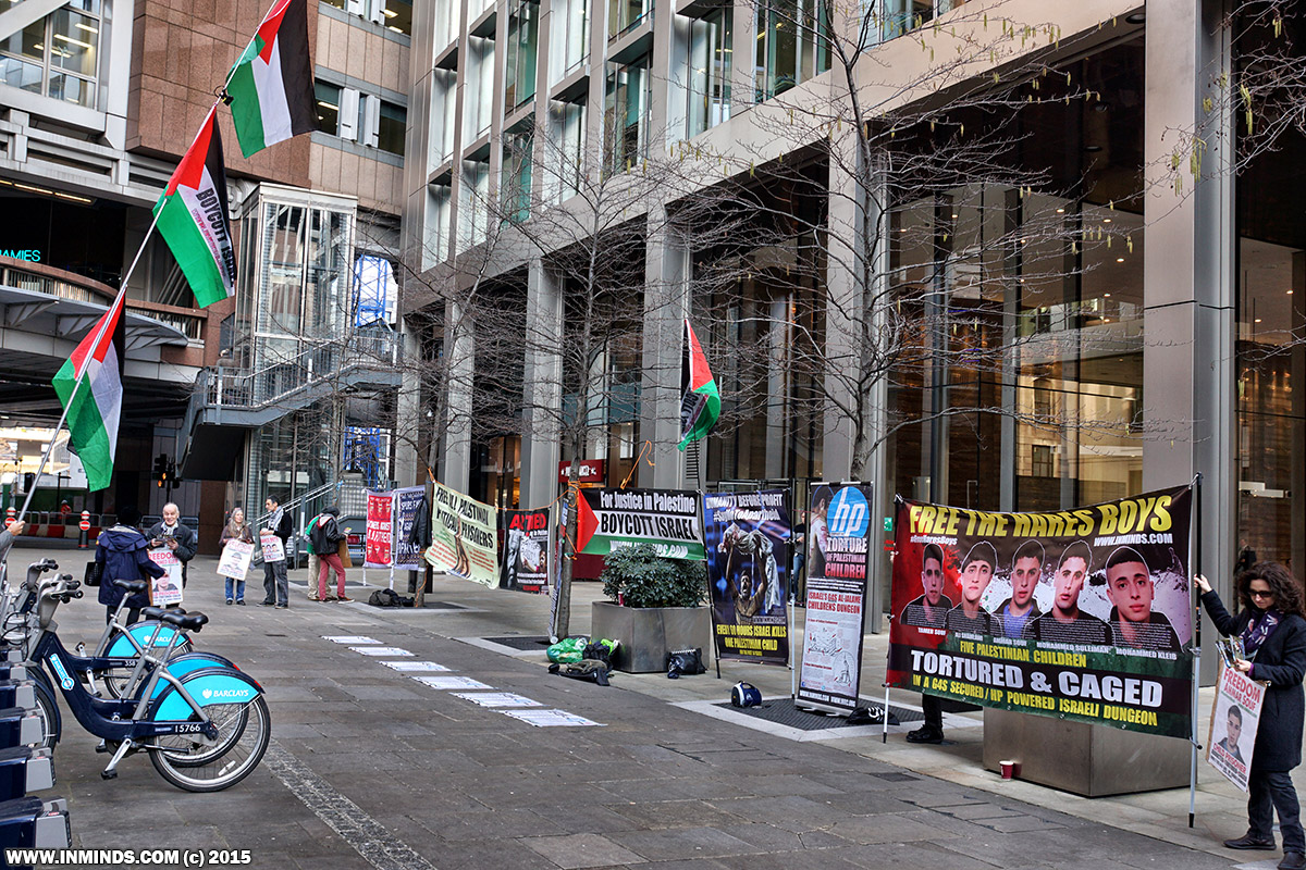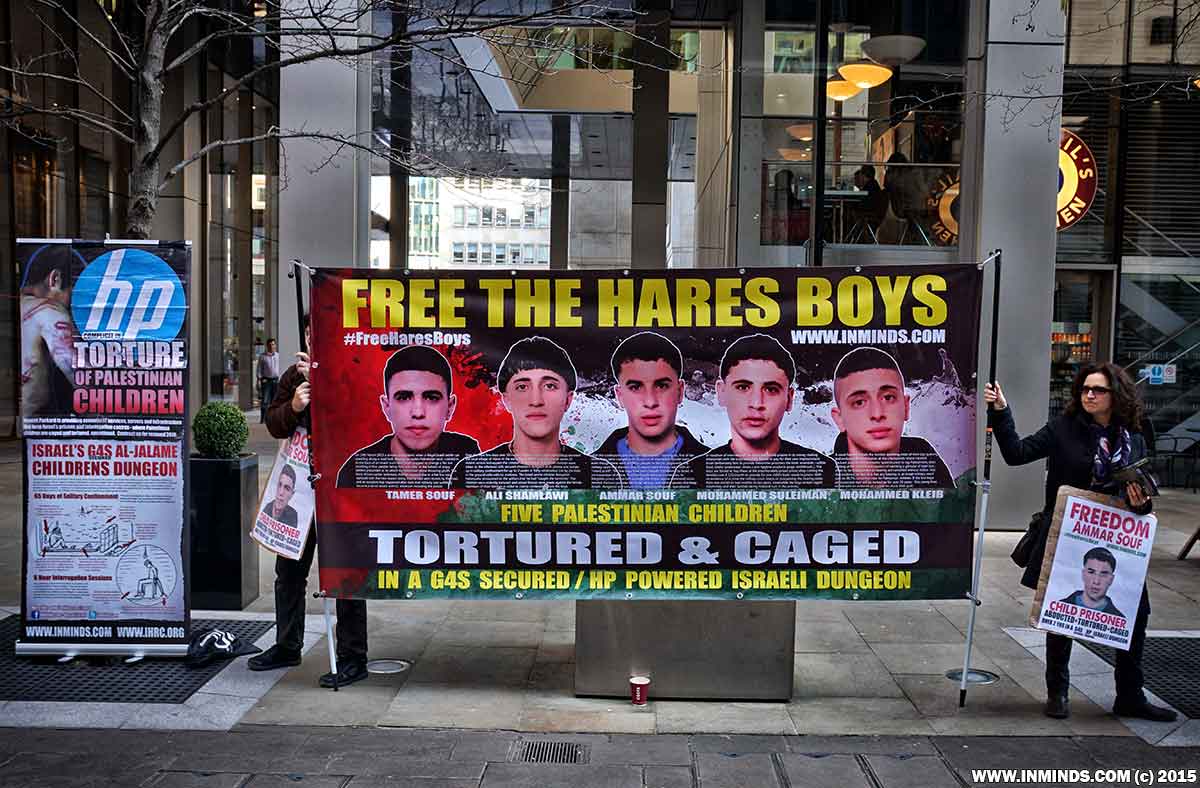 On 20th March we held a second protest for the second anniversary of the abduction of the Hares Boys, this time outside the London headquarters of Hewlett Packard who provide the IT infrastructure and systems that ensures Israel's torture dens and dungeons stay operational.