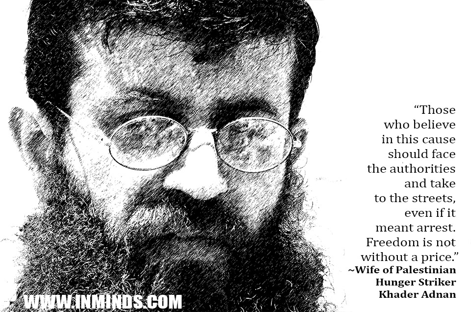 His mother says that "We discussed the issue before he was arrested again in July last year, I told him, please, if they arrest you again don’t go on hunger strike.’ He remained silent, but gave me a look that pierced my heart like a bullet — as if to ask me to respect his decision and not expect me to deprive him of the only weapon he would have.” Khader Adnan informed his wife and his father of his plan to go on hunger strike in case Israeli authorities were to renew his administrative detention. His father explains “Khader is not a nihilist.. He’s not doing this because he wants to die and because he wants to hurt himself. On the contrary, he’s going through this because he loves life and believes that this is the only way to achieve freedom.”