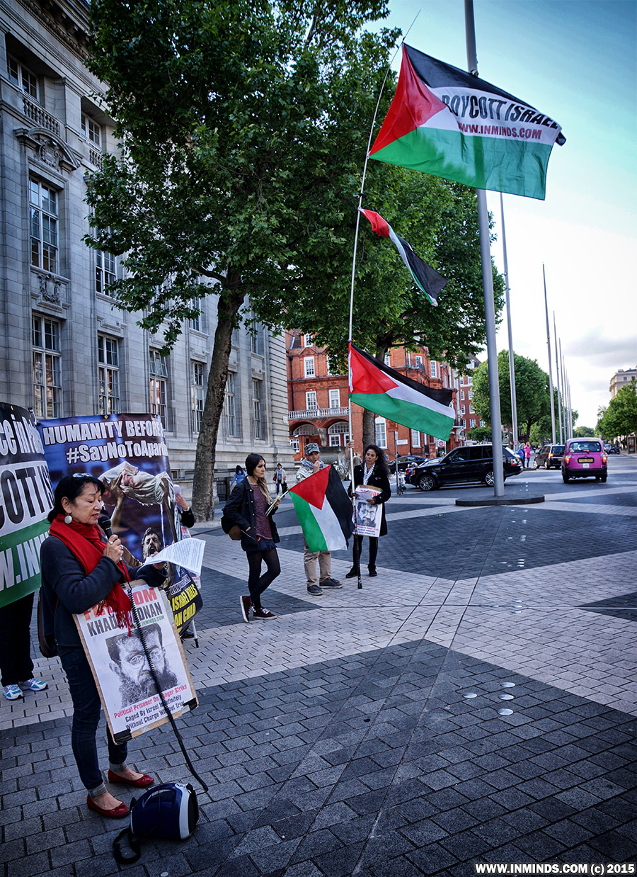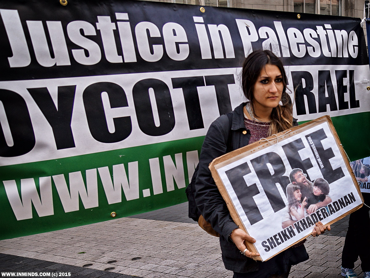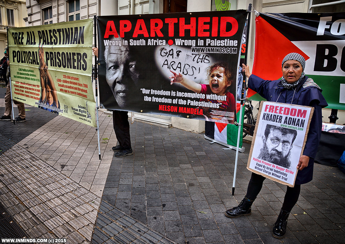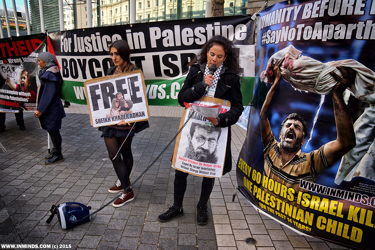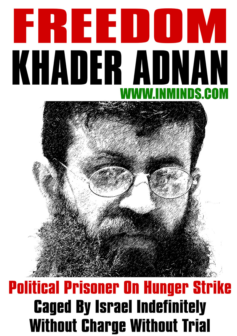 inminds 14 June 2015 An emergency protest to demand freedom for Palestinian hunger striker Sheikh Khader Adnan was organised by Inminds on 9th June 2015 at the reception of the Israeli deputy ambassador at the Goethe Institut in London where the Israeli government sponsored film festival Seret 2015 was being launched. After 36 days on open hunger strike, Khader Adnan is in critical condition, experiencing intermittent comas, a sharp decrease in weight and drop in his heart rate.