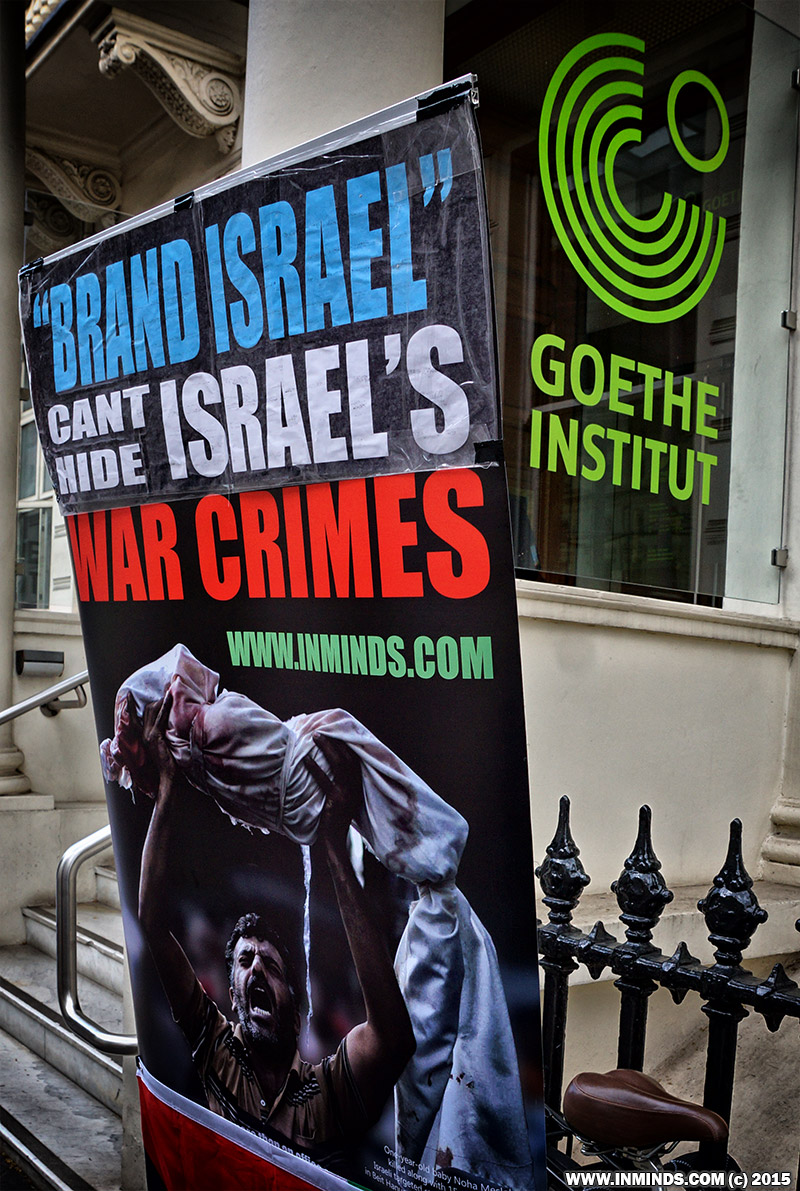 Today the German government is shamefully celebrating 50 years of collaboration with a racist apartheid regime. As part of this celebration of ethnic cleansing, occupation and war crimes the German deputy ambassador Tania Freiin von Uslar-Gleichen and the Israeli deputy ambassador Eitan Na'eh are hosting a reception at the Goethe Institut to launch the Israeli government sponsored Seret 2015 film festival.