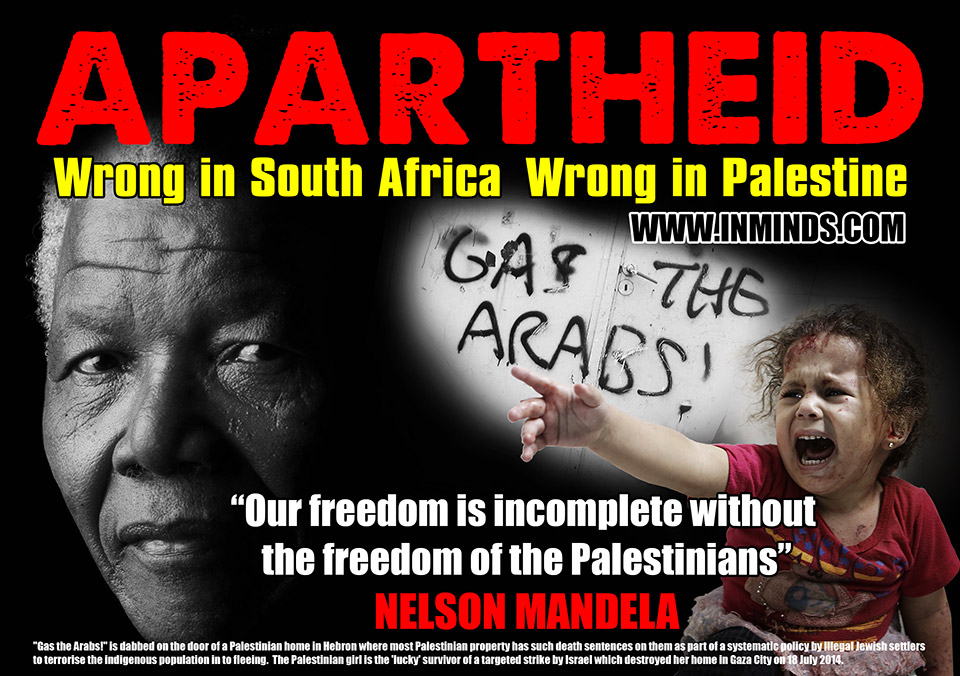O Tribunal Russell sobre Palestina classificou o regime imposto aos palestinos por Israel como de apartheid institucionalizado, com base no direito internacional e tomando como exemplo a segregação vivida por negros na África do Sul até os anos 1990. Reconhecendo essa situação, em outubro de 2011, o sulafricano Desmond Tutu, consagrado com o Prêmio Nobel da Paz por sua luta contra o apartheid, apelou à ópera de seu país para cancelar uma apresentação agendada em Israel. O ativista sulafricano Ronnie Kasrils, exministro de Nelson Mandela, classificou o apartheid a que estão submetidos os palestinos por Israel como ainda mais grave do que o que os negros viveram na África do Sul.