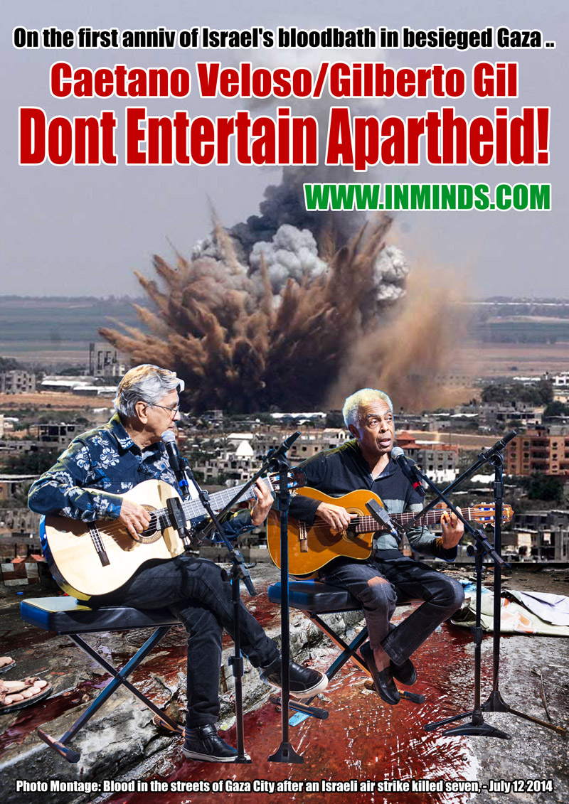 Dear Gilberto and Caetano, 'The imprisoned and the dead' reach out, please, join us in this by cancelling your gig in Israel.