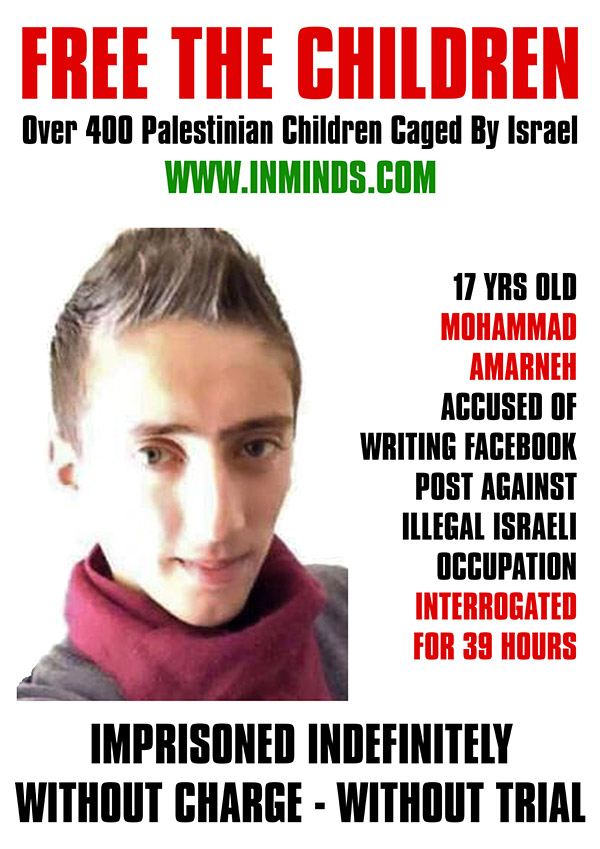 Mohammad Amarneh is a 17 years old Palestinian student who was abducted by the Israeli occupation forces last month.