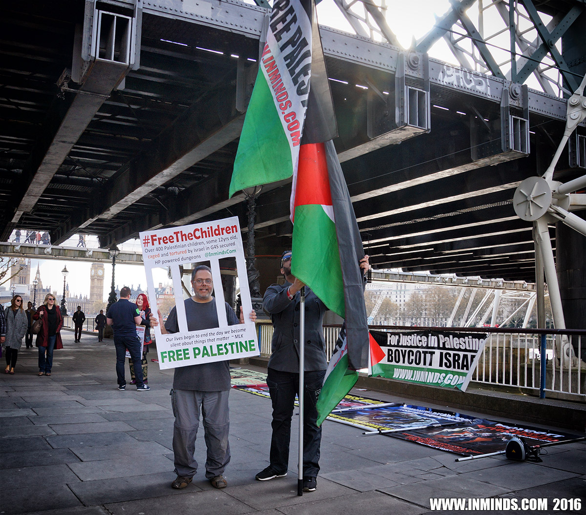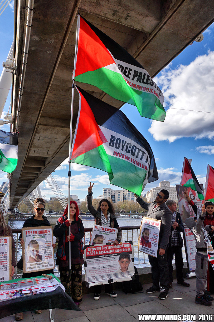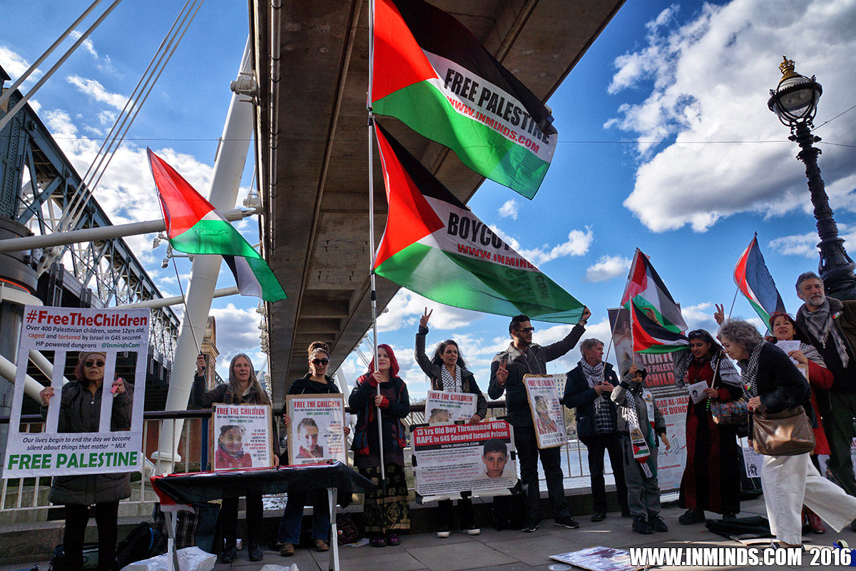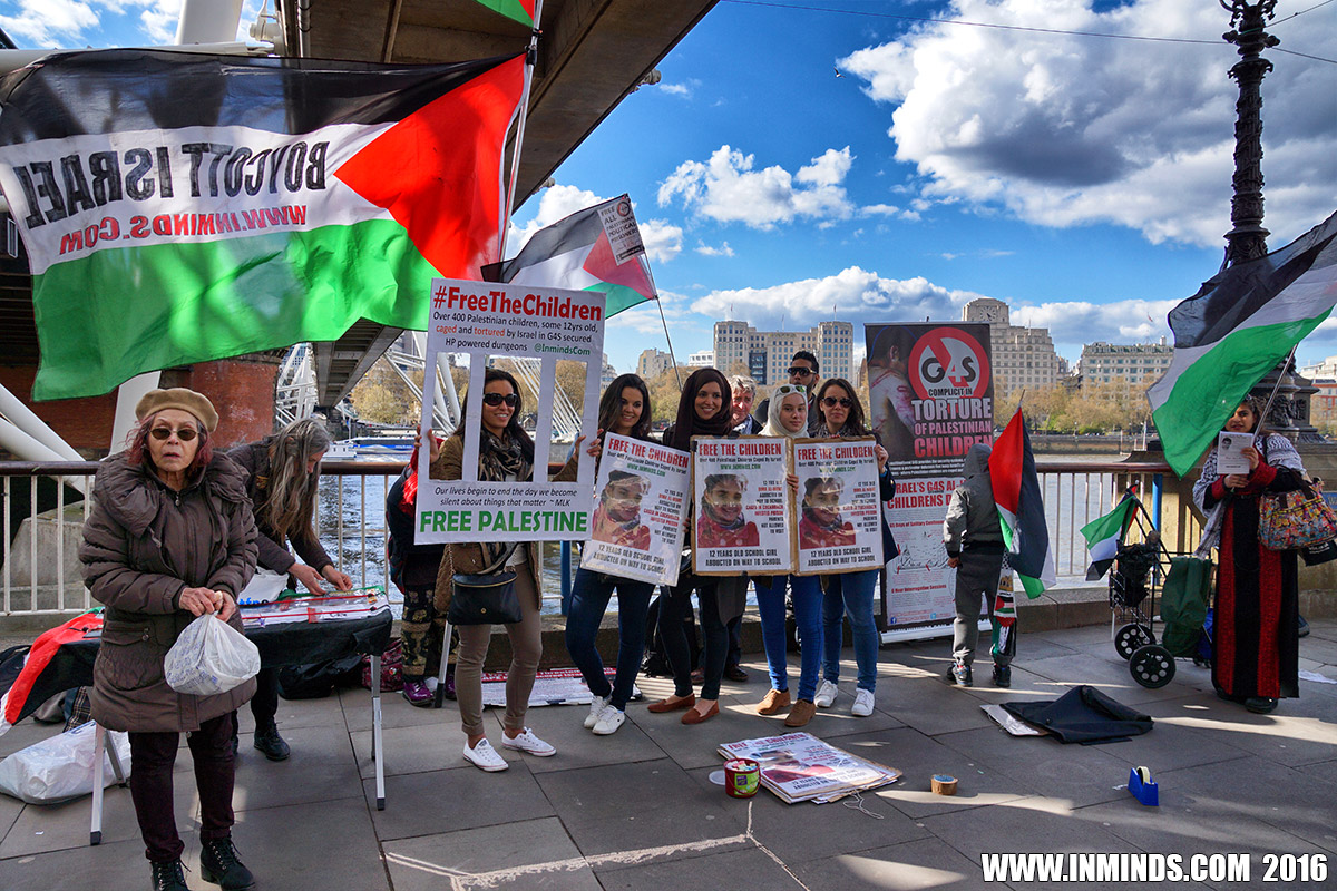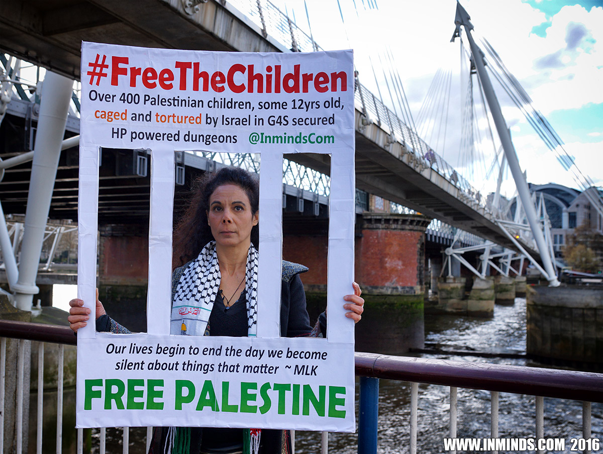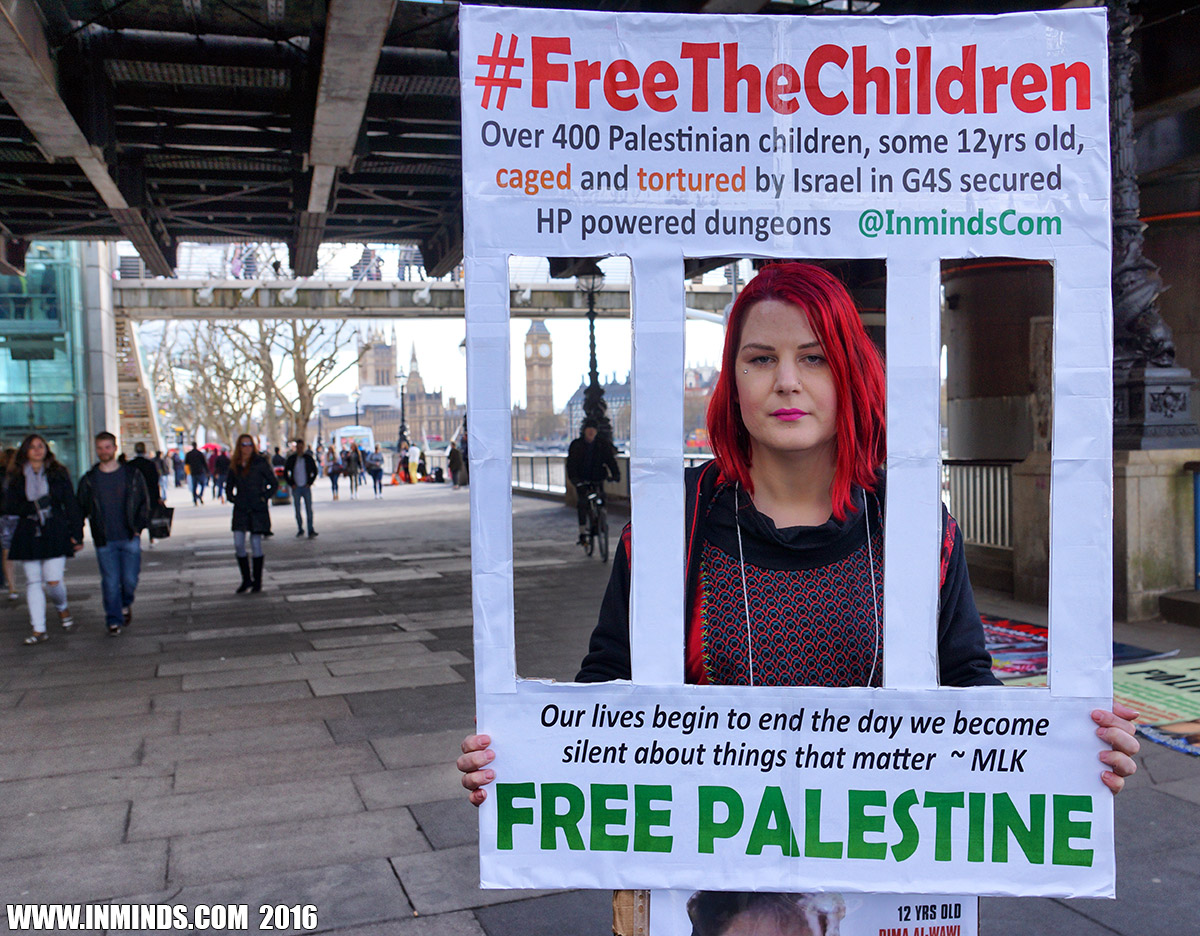 inminds 28 April 2016 On the international day of solidarity for Palestinian Prisoners, Sunday 17th April, activists from Inminds human rights group took to the South Bank of the River Thames to educate the public on the issue of Palestinian political prisoners, in particular child prisoners, which according to the UN are routinely tortured, and the role British companies like G4S play in those human rights abuses.