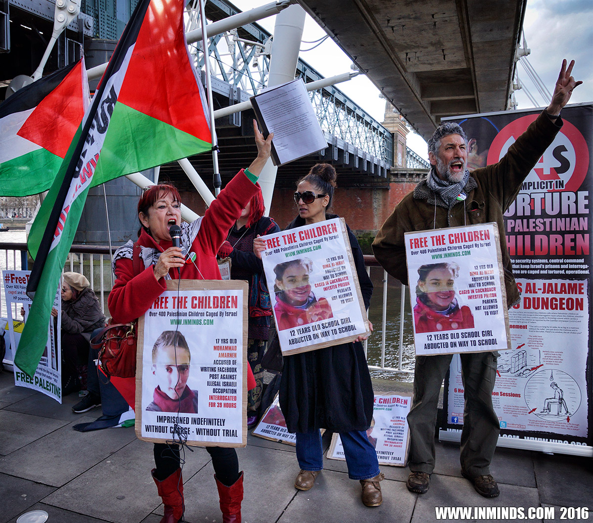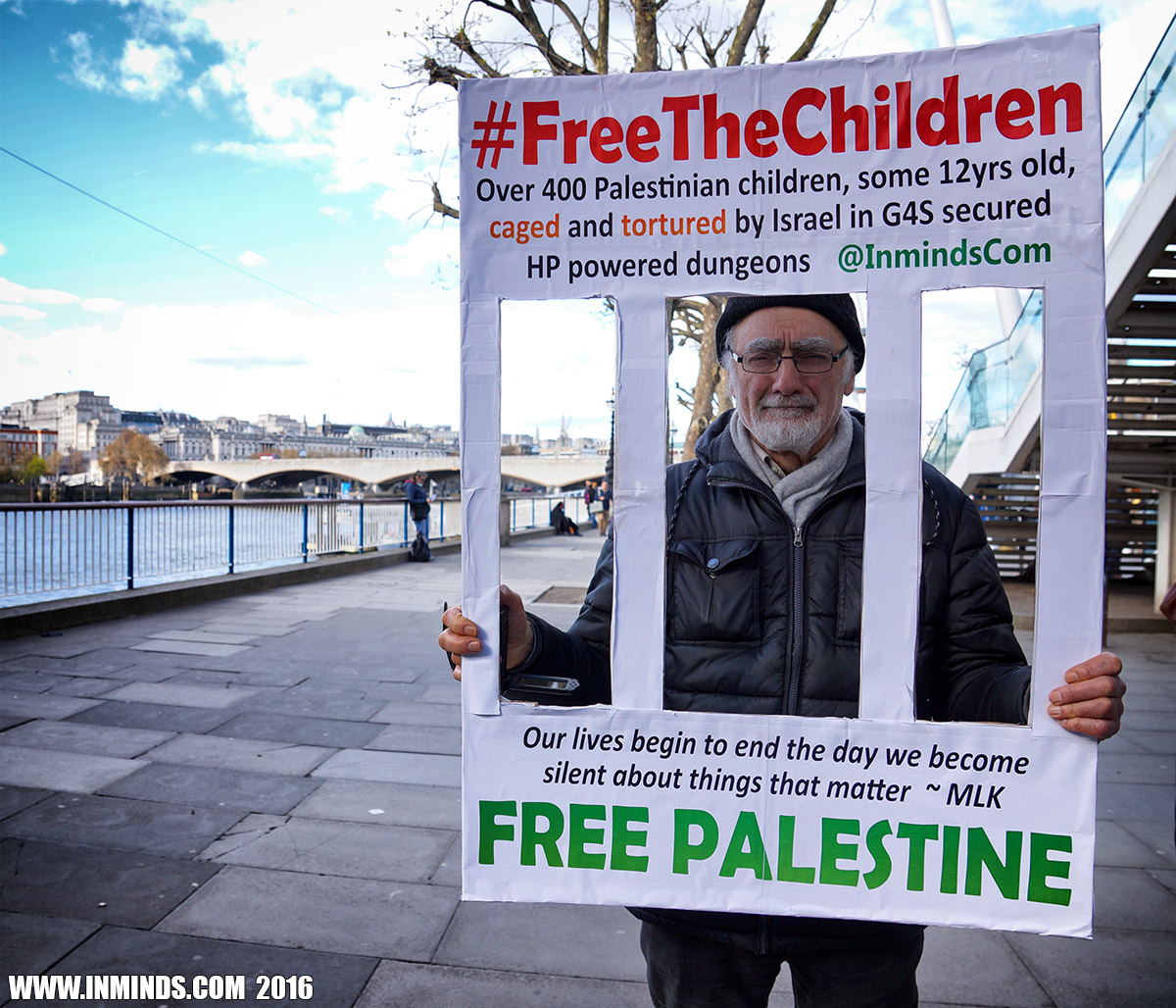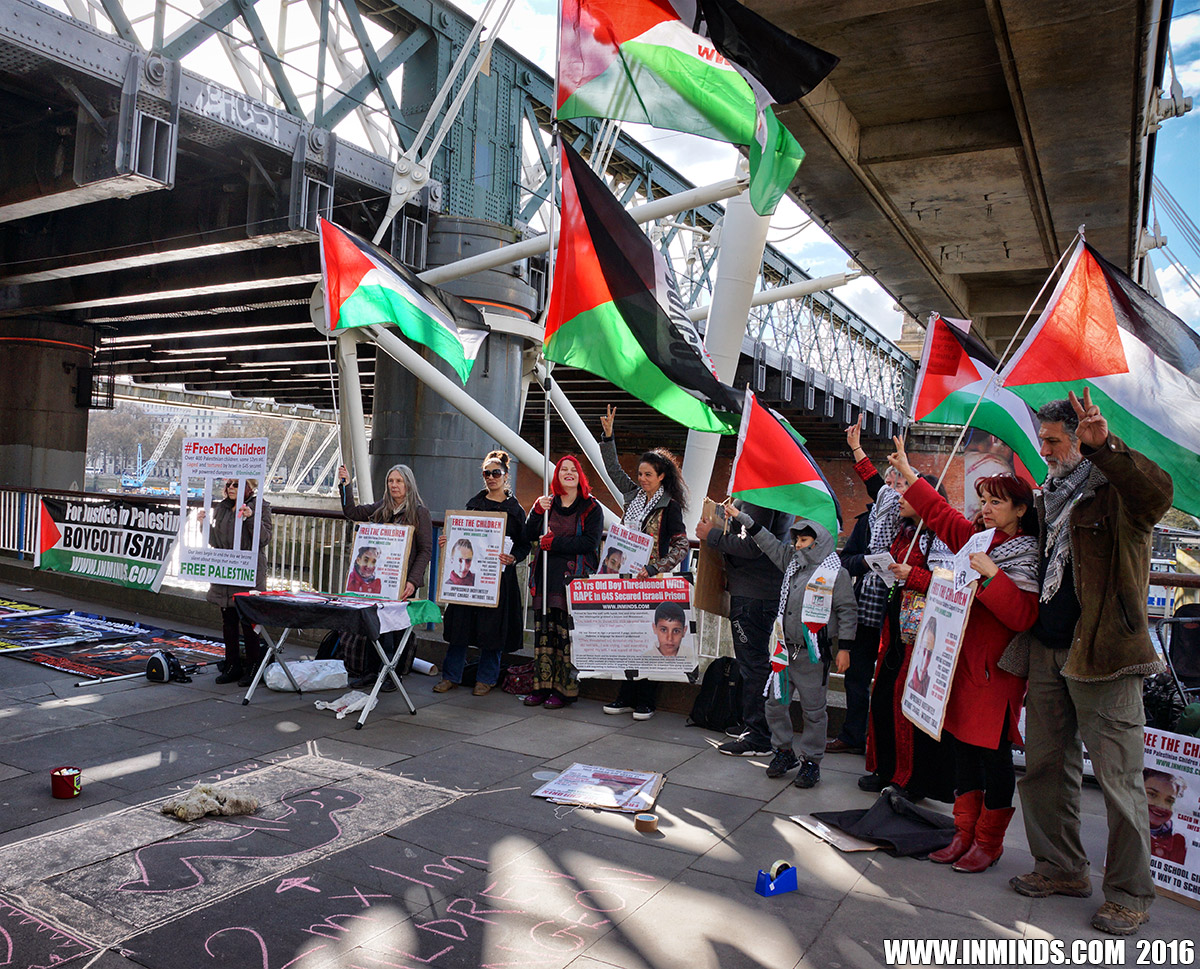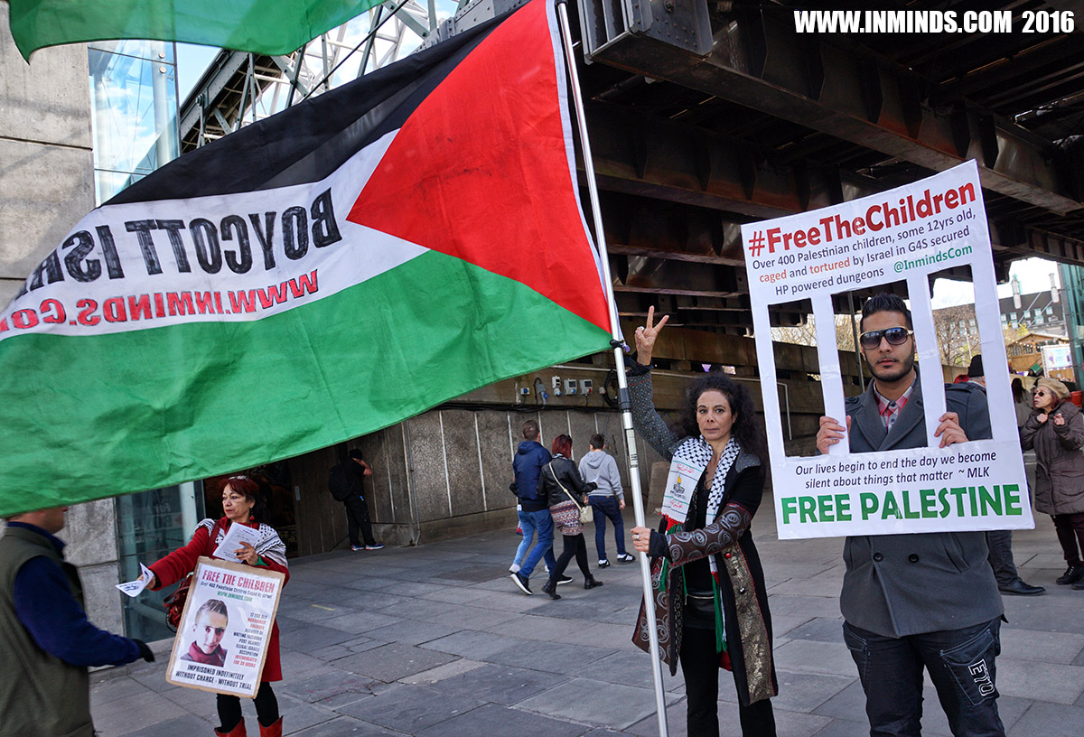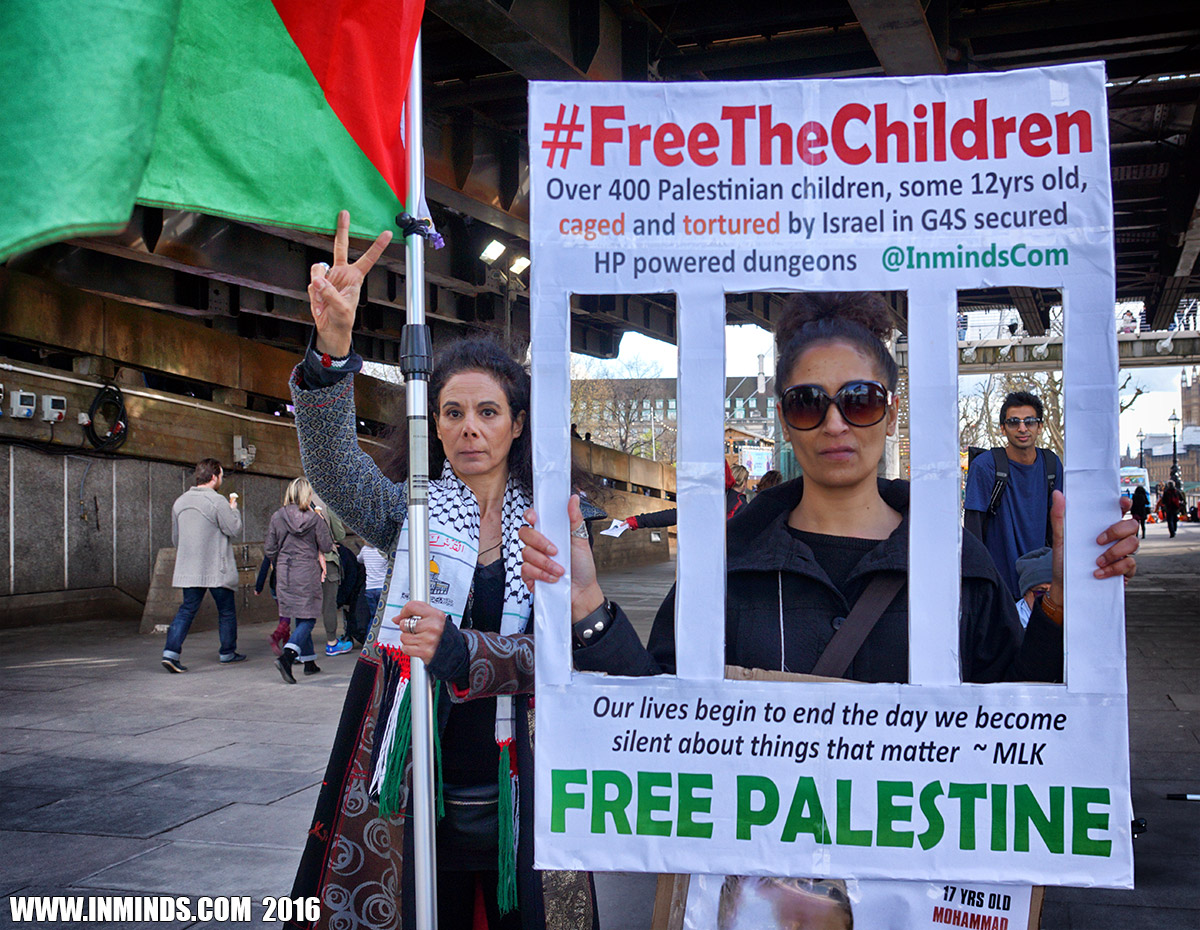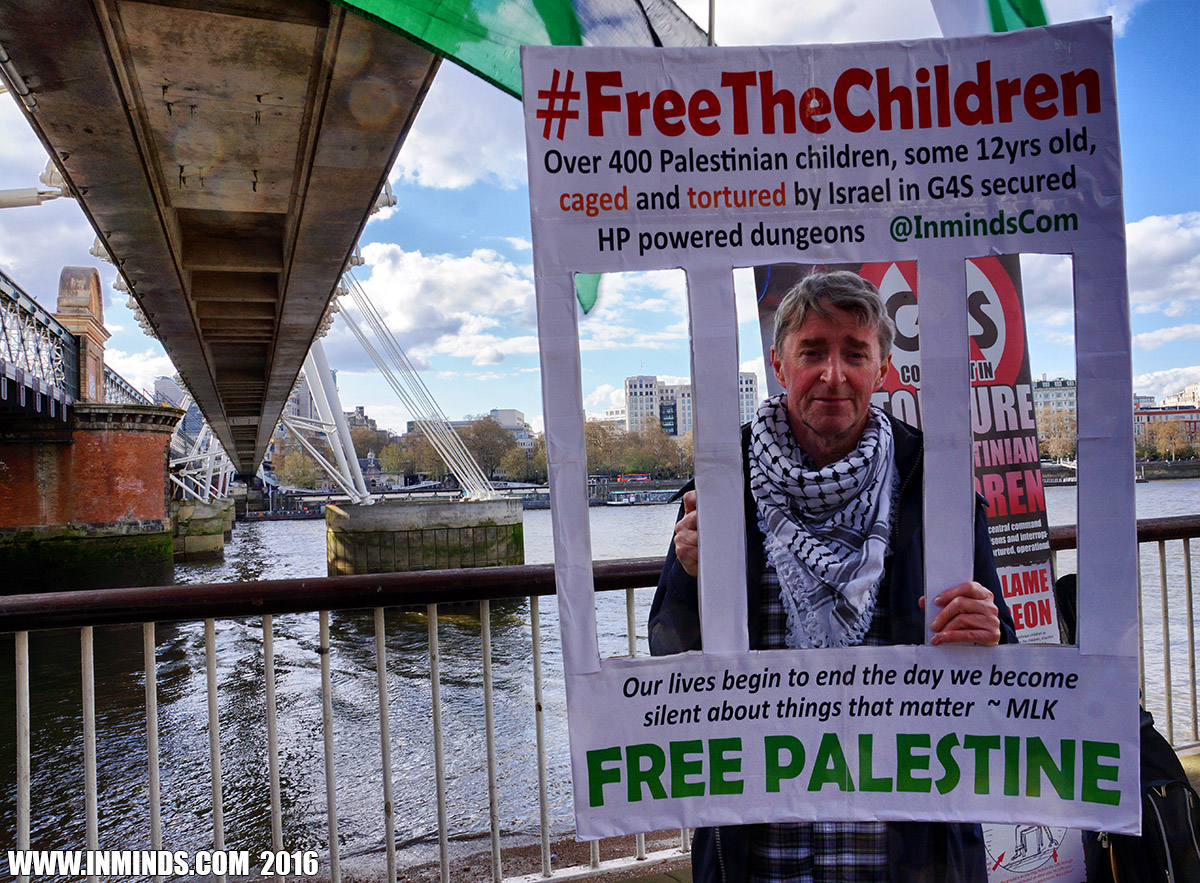 inminds 28 April 2016 On the international day of solidarity for Palestinian Prisoners, Sunday 17th April, activists from Inminds human rights group took to the South Bank of the River Thames to educate the public on the issue of Palestinian political prisoners, in particular child prisoners, which according to the UN are routinely tortured, and the role British companies like G4S play in those human rights abuses.