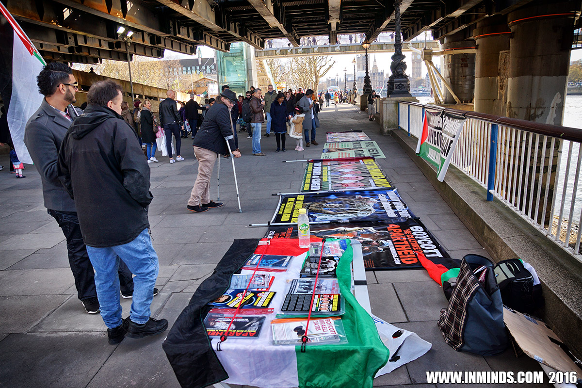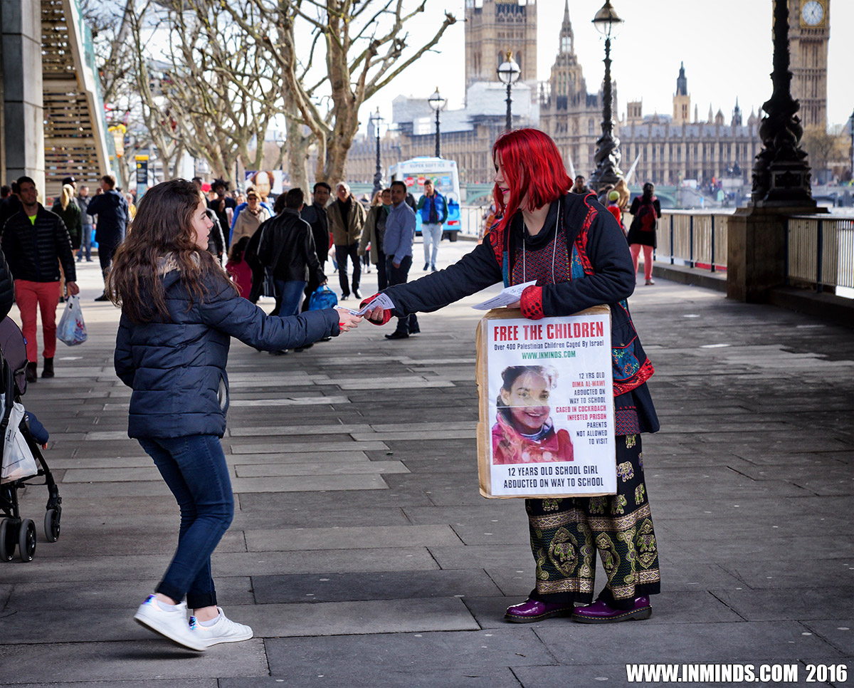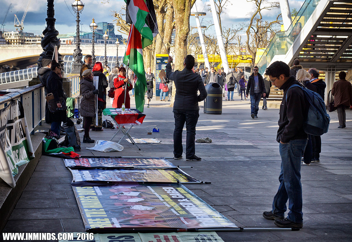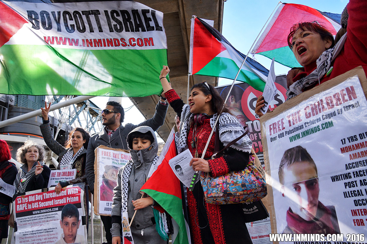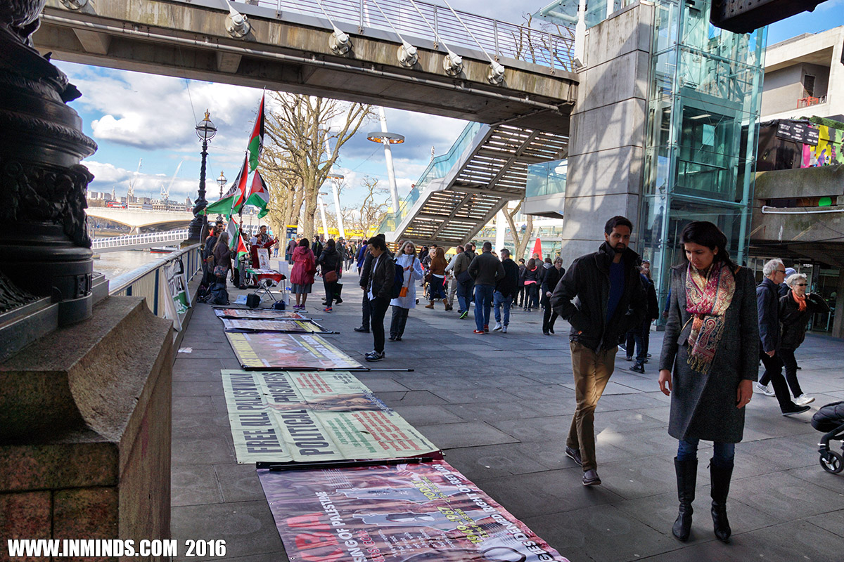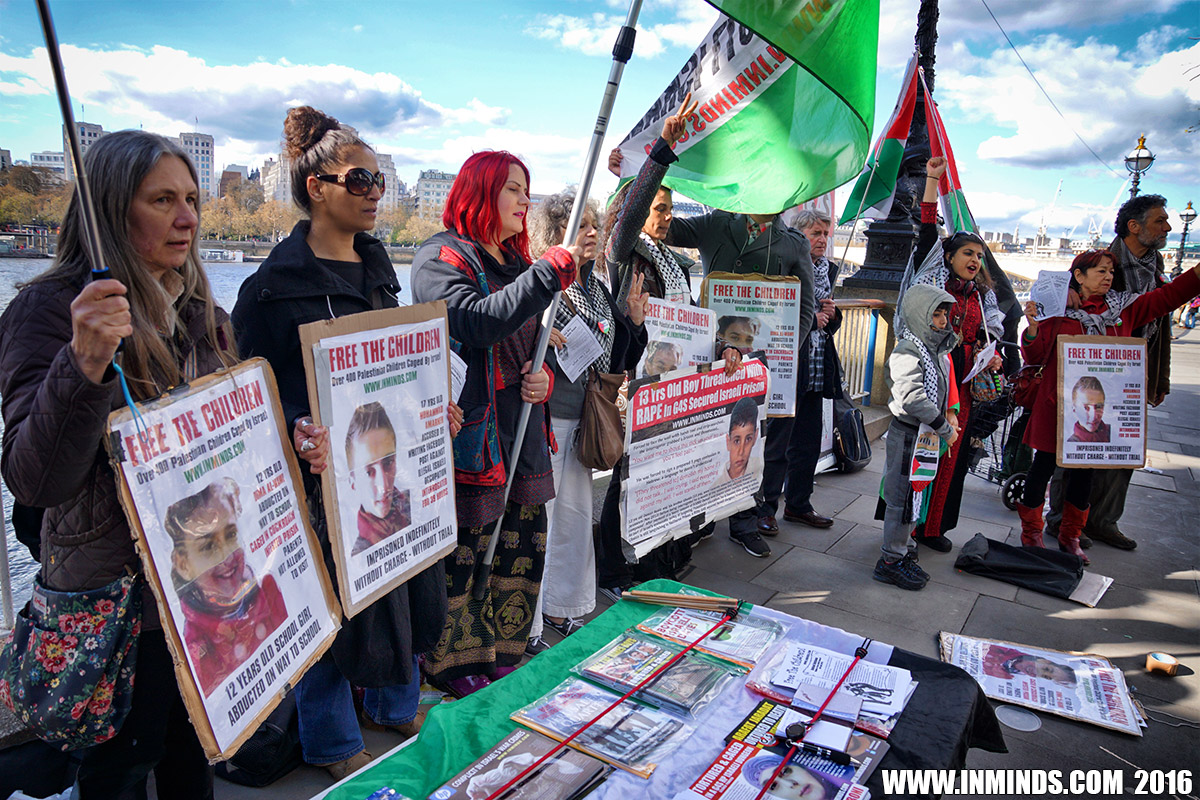 inminds 28 April 2016 On the international day of solidarity for Palestinian Prisoners, Sunday 17th April, activists from Inminds human rights group took to the South Bank of the River Thames to educate the public on the issue of Palestinian political prisoners, in particular child prisoners, which according to the UN are routinely tortured, and the role British companies like G4S play in those human rights abuses.