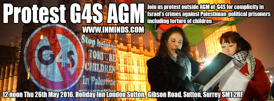 [Boycott - Other News] Alert: 26th May 2016 - Protest G4S AGM - End complicity in Israel's torture of children