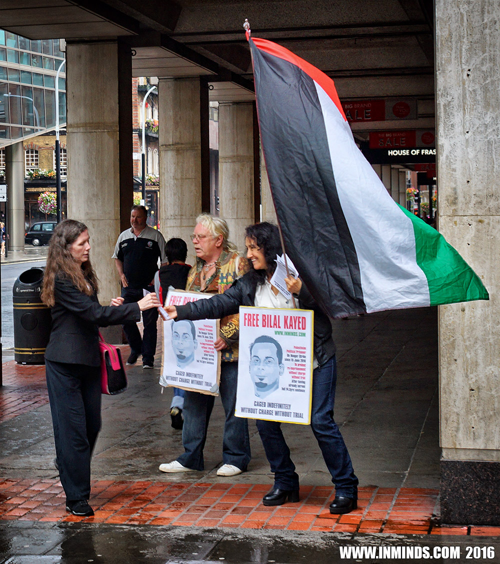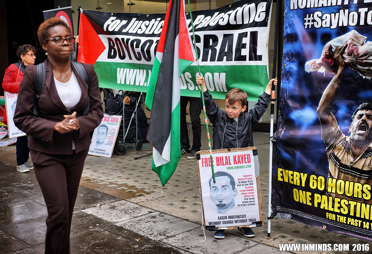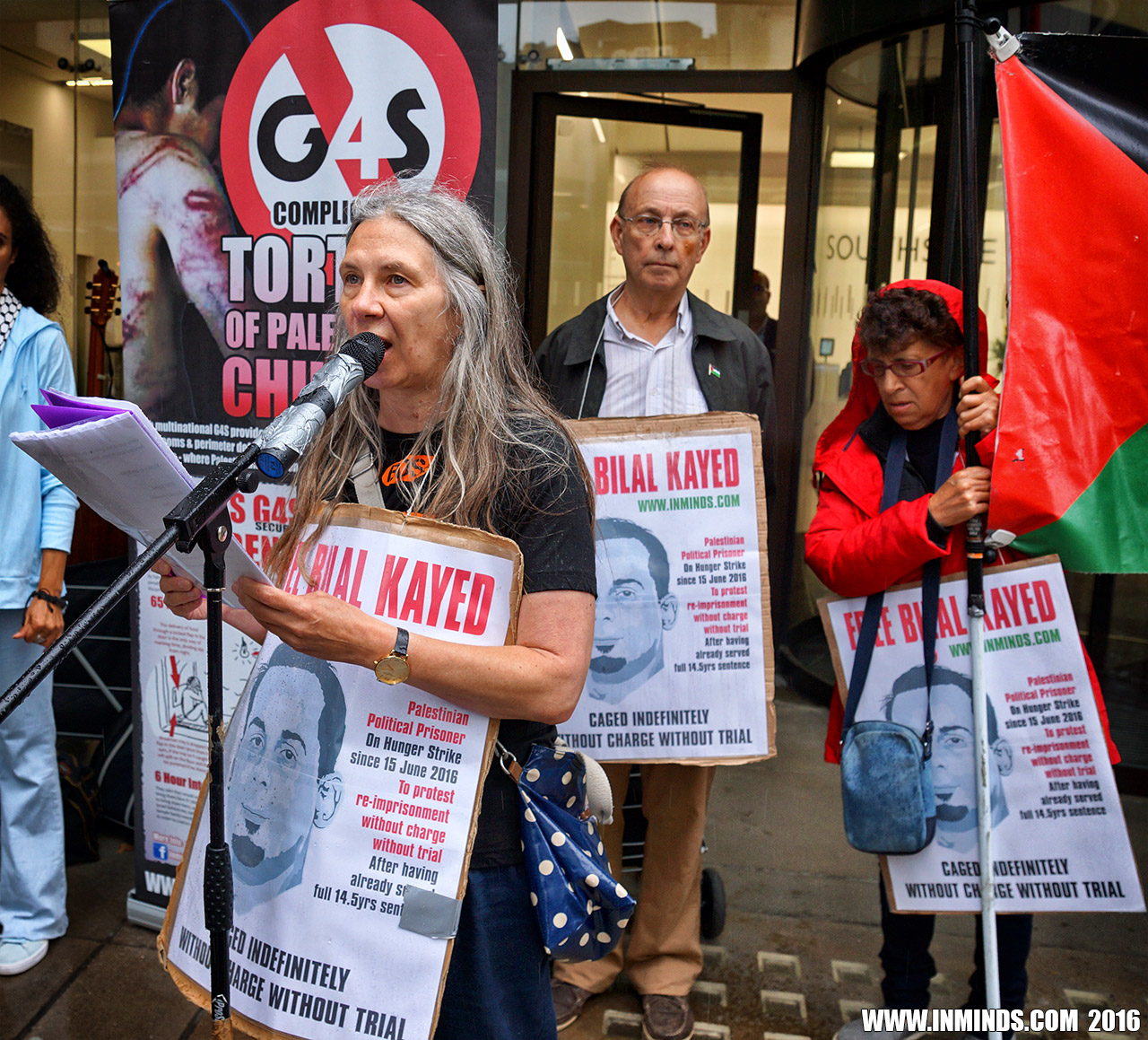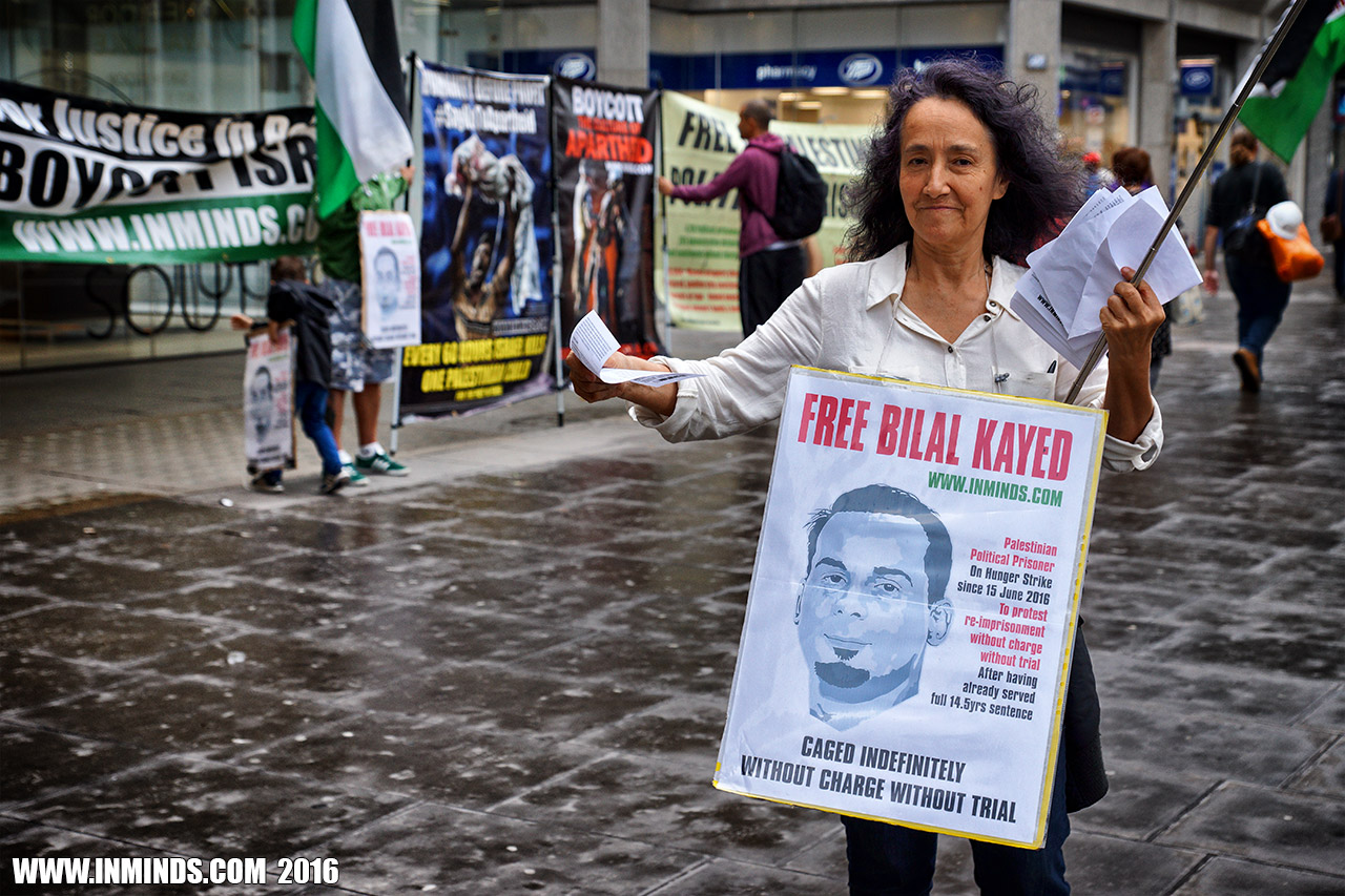 inminds 20 August 2016 On Friday 19th August 2016 Inminds human rights group protested outside the global headquarters of the worlds largest private security company G4S in Victoria, London to demand the immediate and unconditional release of Palestinian hunger striker Bilal Kayed who had been on hunger strike for 66 days. Inminds also demanded an end to Israel's illegal policy of punitive Administrative Detention whereby Palestinians like Bilal Kayed are caged without charge or trial for an indefinite period of time with no means to defend themselves.