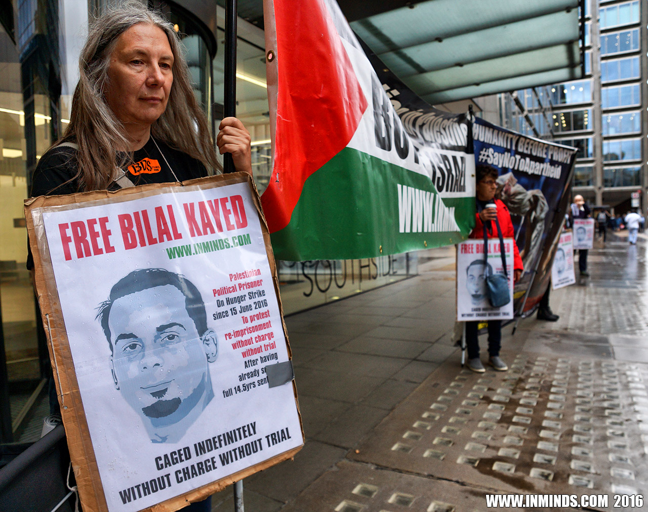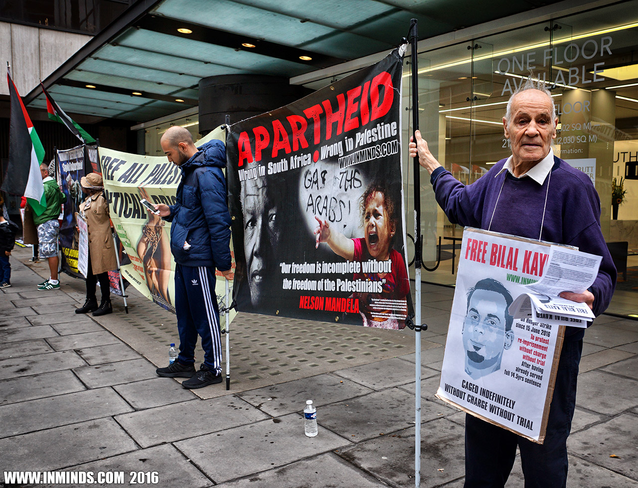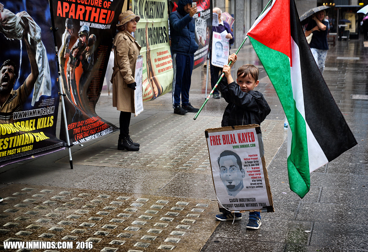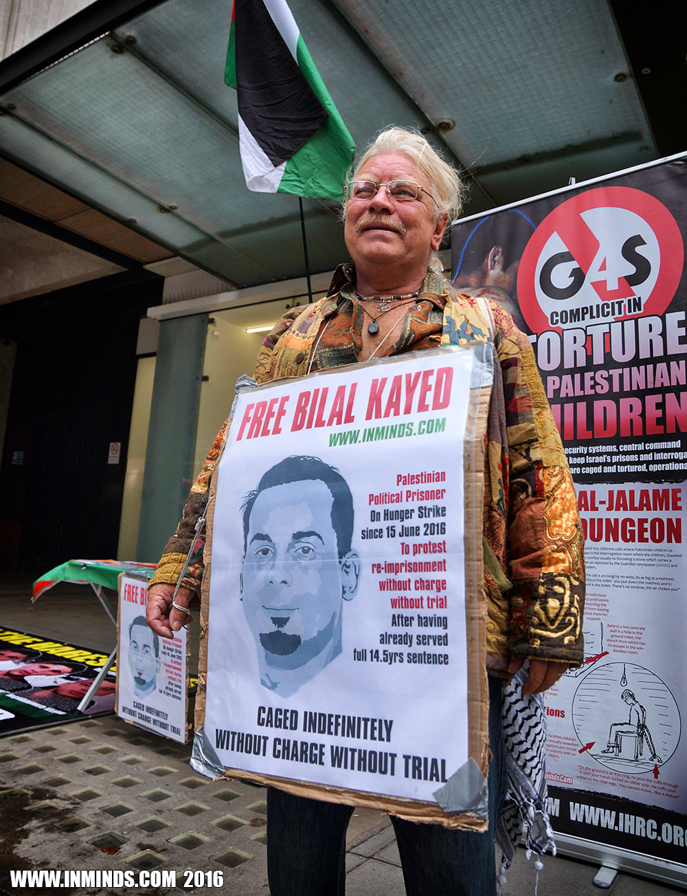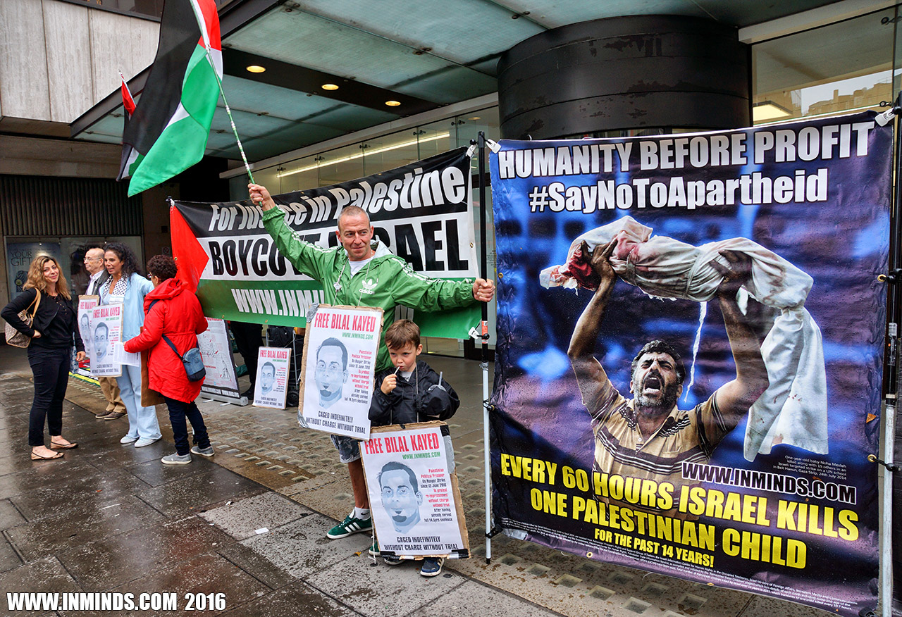 inminds 20 August 2016 On Friday 19th August 2016 Inminds human rights group protested outside the global headquarters of the worlds largest private security company G4S in Victoria, London to demand the immediate and unconditional release of Palestinian hunger striker Bilal Kayed who had been on hunger strike for 66 days. Inminds also demanded an end to Israel's illegal policy of punitive Administrative Detention whereby Palestinians like Bilal Kayed are caged without charge or trial for an indefinite period of time with no means to defend themselves.