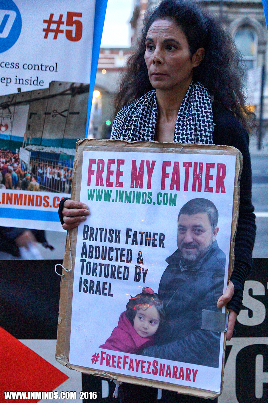 Inminds chair Abbas Ali said "Its shocking that the British government is silent about the plight of a British citizen who has been abducted by a foreign power who admits that they have tortured him and that he has no case to answer. The British government has shamefully left Fayez Sharary to rot in an Israeli dungeon. Why is the government doing nothing to secure his release? We demand that the British government put pressure on the Israeli regime to immediately and unconditionally release Fayez Sharary so he can be reunited with his family."
