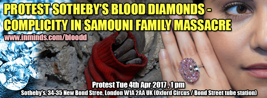 On 4th April 2017, Inminds human rights group will protest outside Sotheby's in London to highlight the bloody connection between the 59.6-carat Pink Star diamond, formally known as the Steinmetz Pink, that is being auctioned at Sotheby's Hong Kong on the same day, and the massacre of 29 members of the Samouni family of Gaza in 2009. Inminds will demand Sotheby's end its partnership with Diacore, formally known as Steinmetz Diamond Group, and pay reparations to the survivors of the massacre.