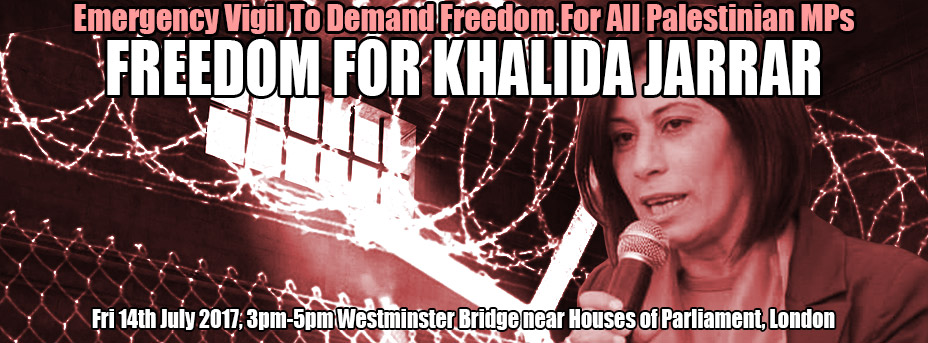 Alert - 14th July 2017 - Emergency vigil to demand freedom for Khalida Jarrar and all imprisoned Palestinian MPs