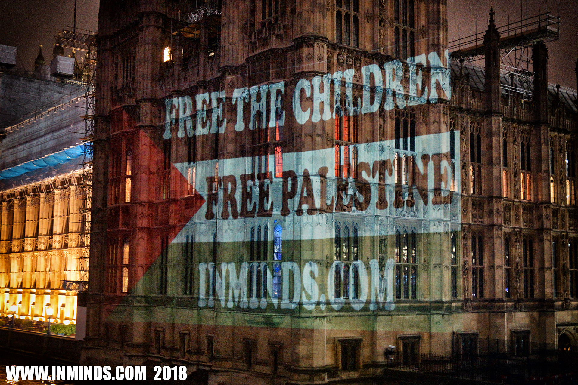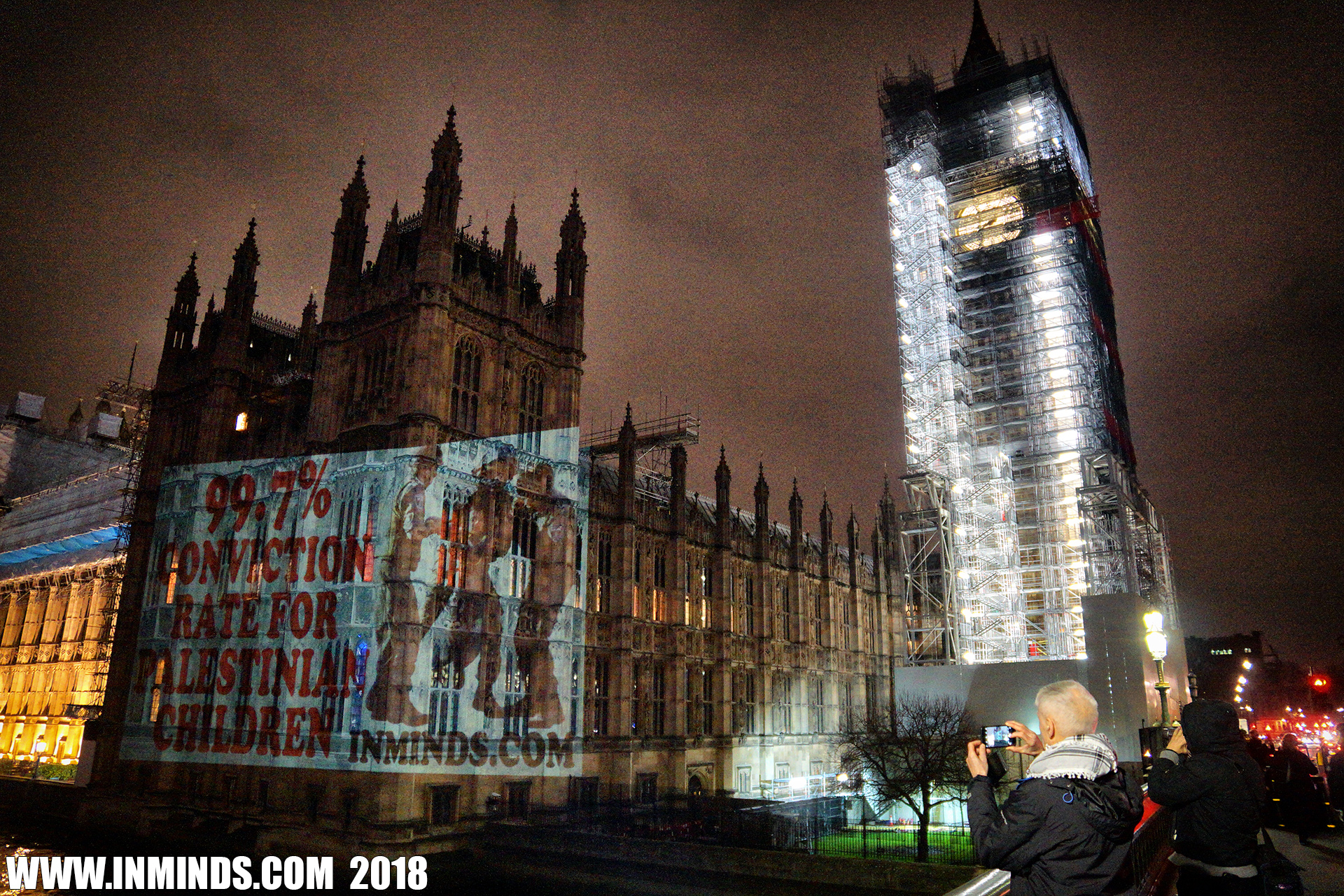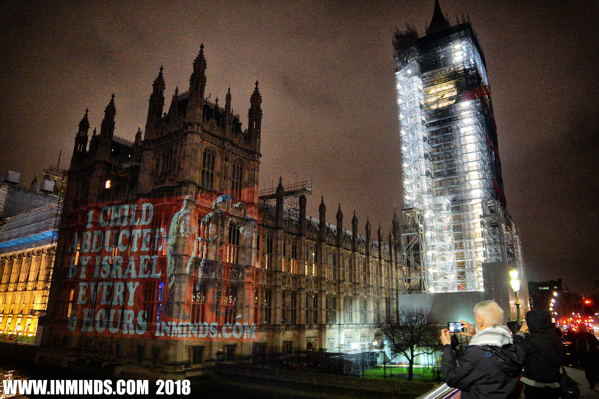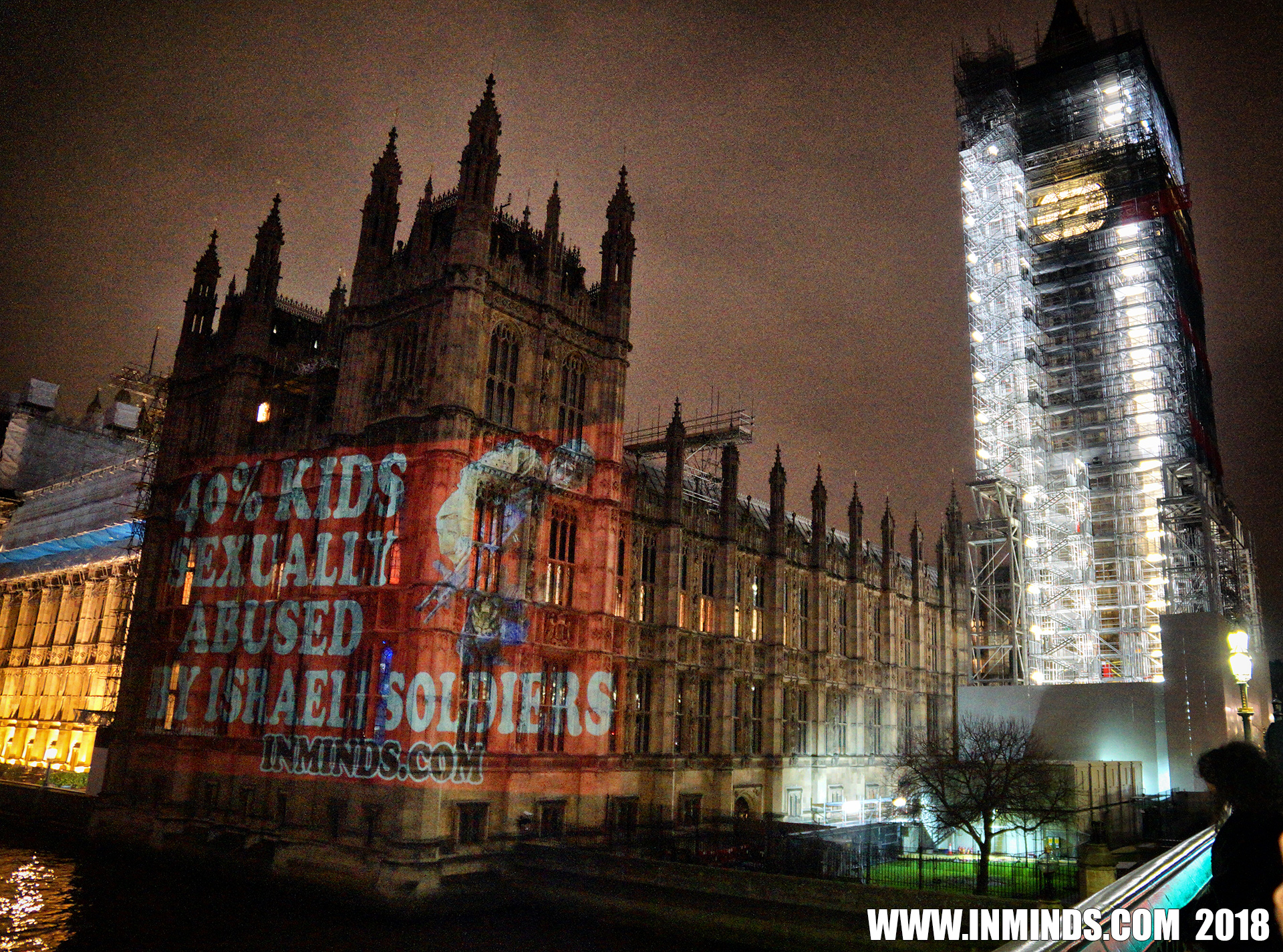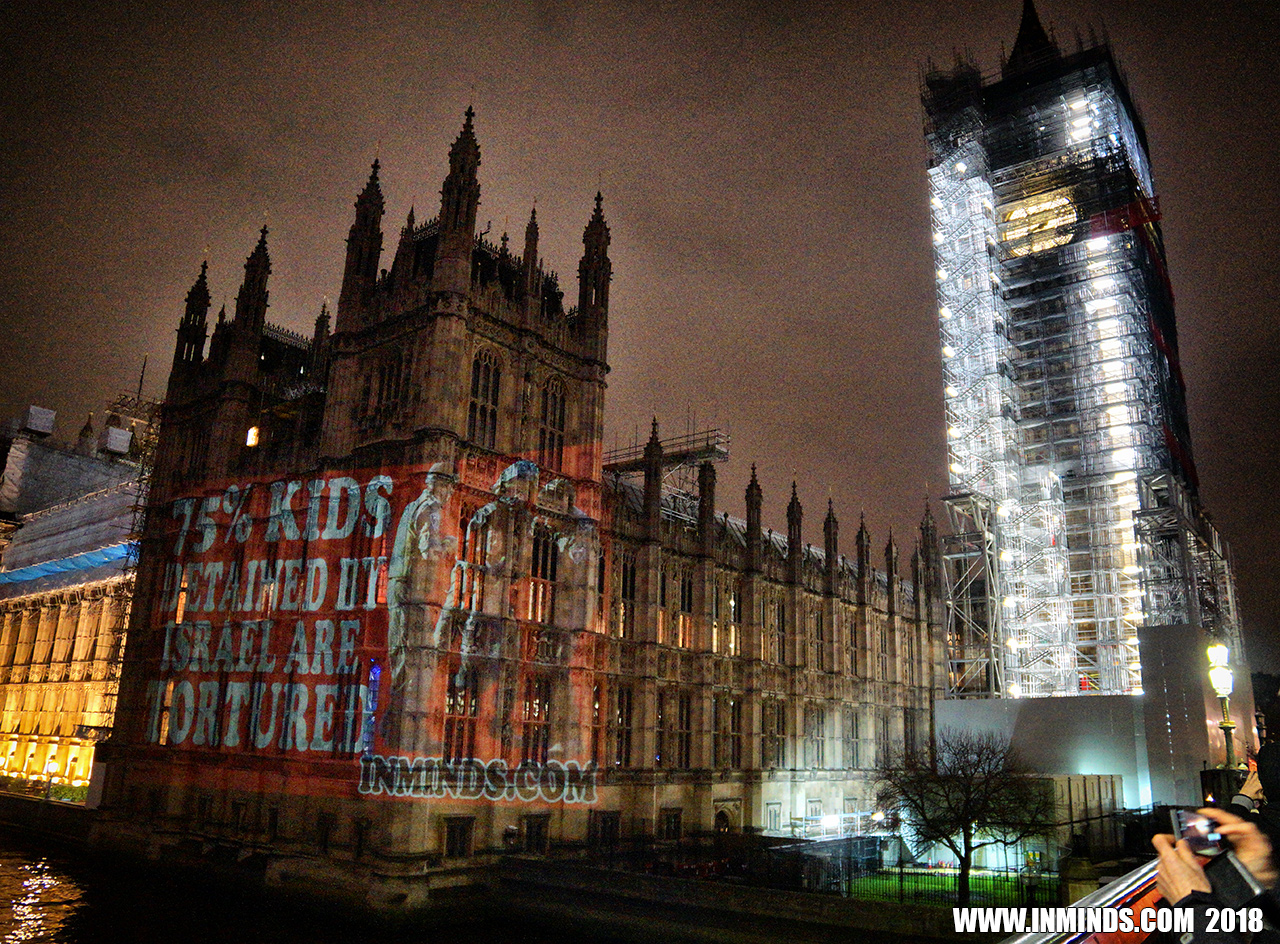 On the evening of Friday 26th January 2018, Inminds human rights group undertook a guerilla projection on the walls of the Palace of Westminster, to highlight the plight of Palestinian child prisoners in Israel dungeons.