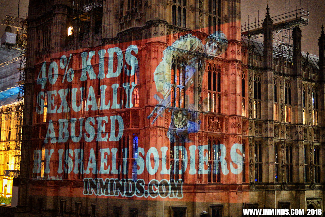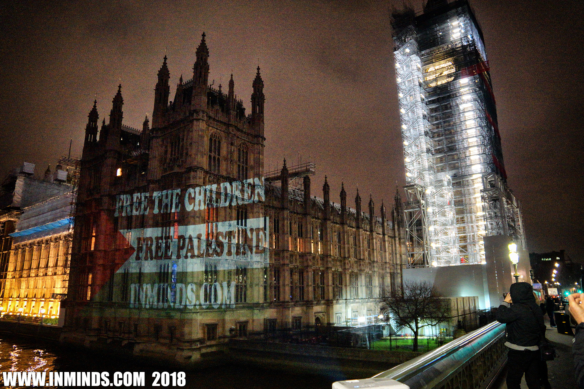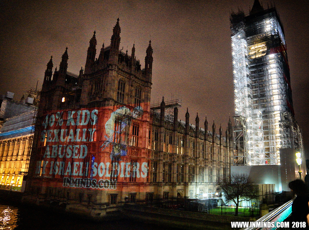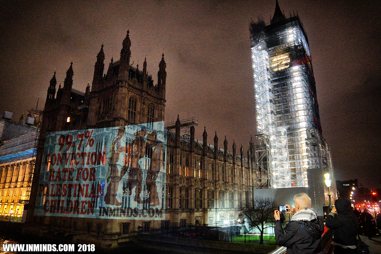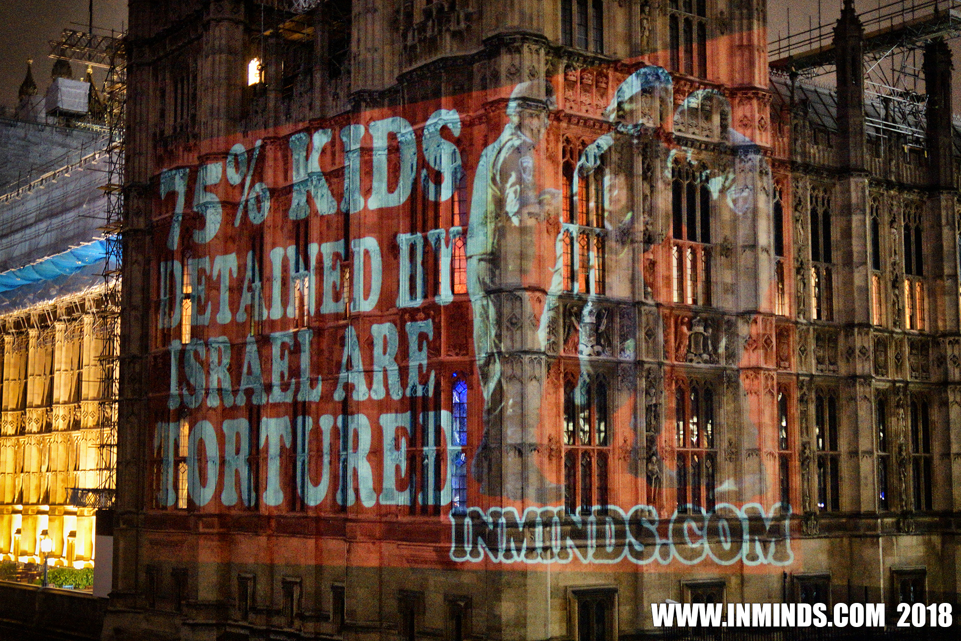 On the evening of Friday 26th January 2018, Inminds human rights group undertook a guerilla projection on the walls of the Palace of Westminster, to highlight the plight of Palestinian child prisoners in Israel dungeons.