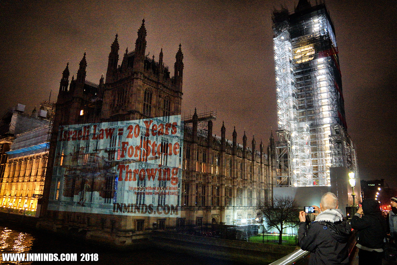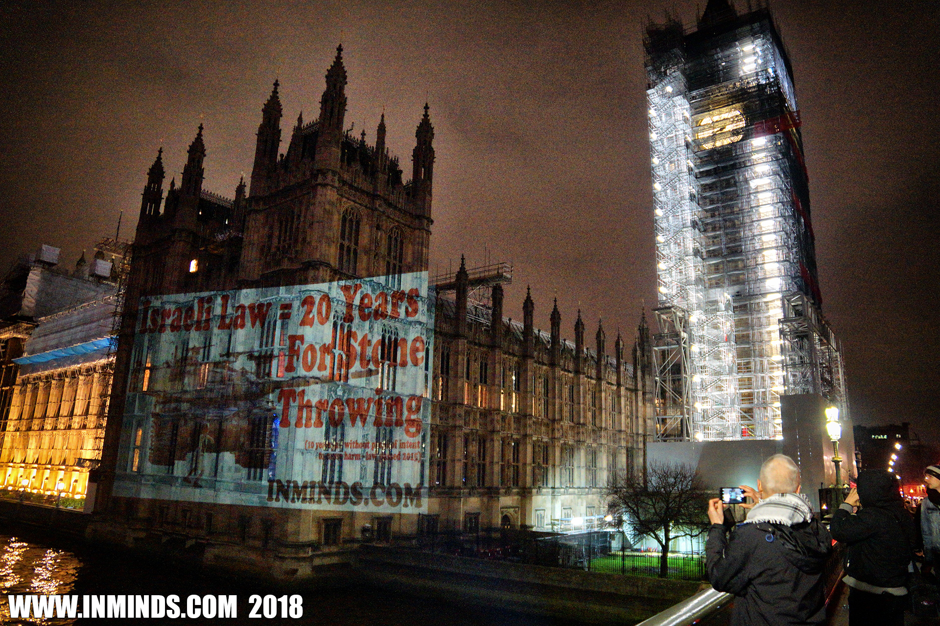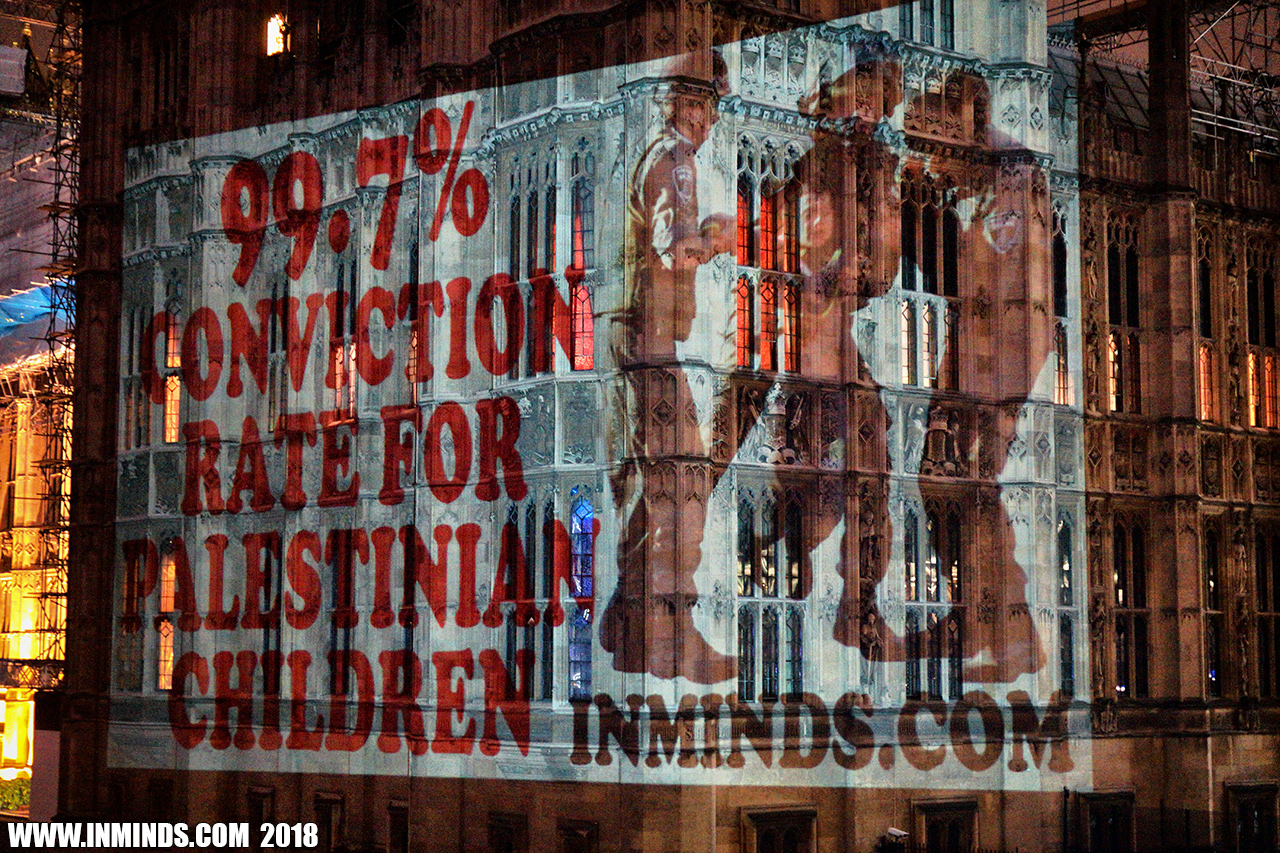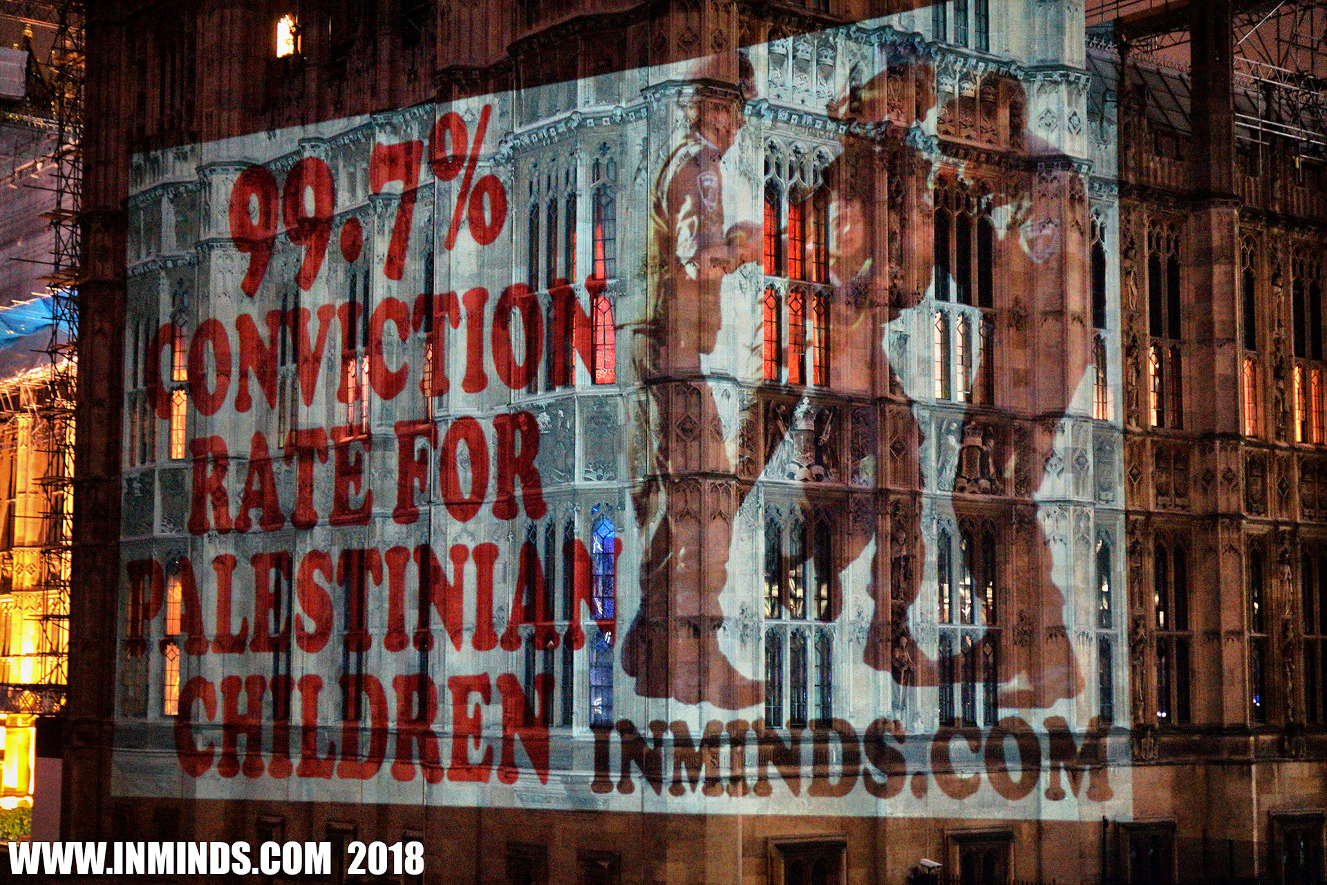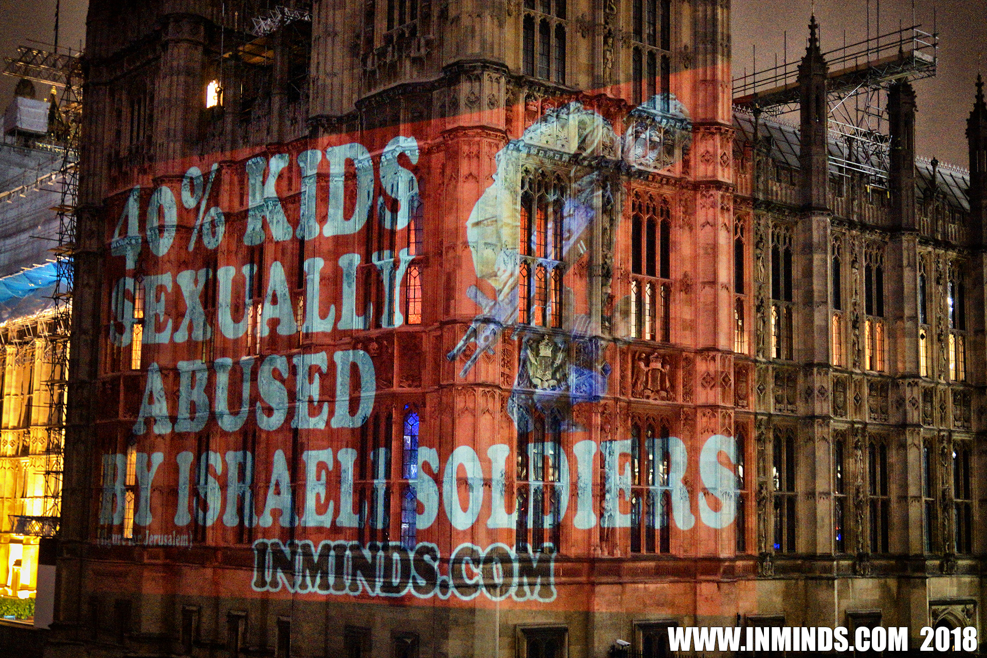 On the evening of Friday 26th January 2018, Inminds human rights group undertook a guerilla projection on the walls of the Palace of Westminster, to highlight the plight of Palestinian child prisoners in Israel dungeons.