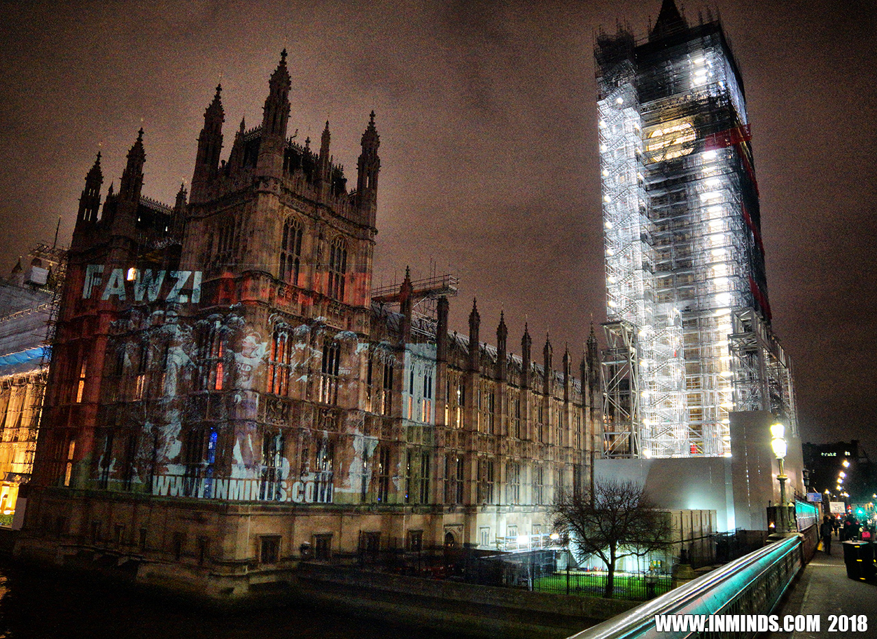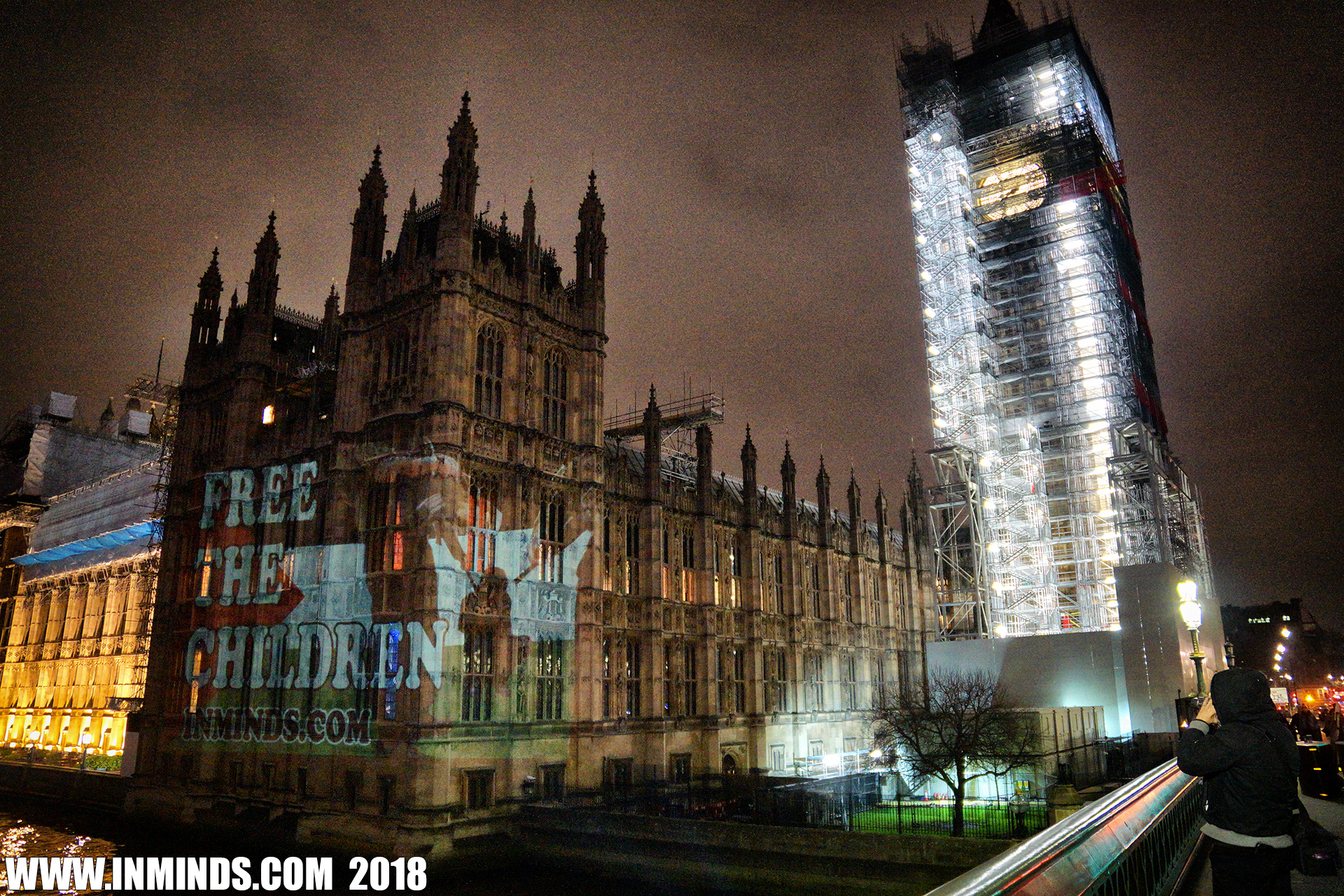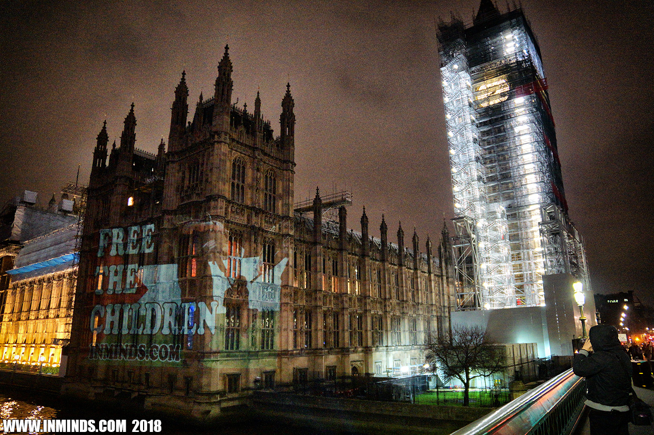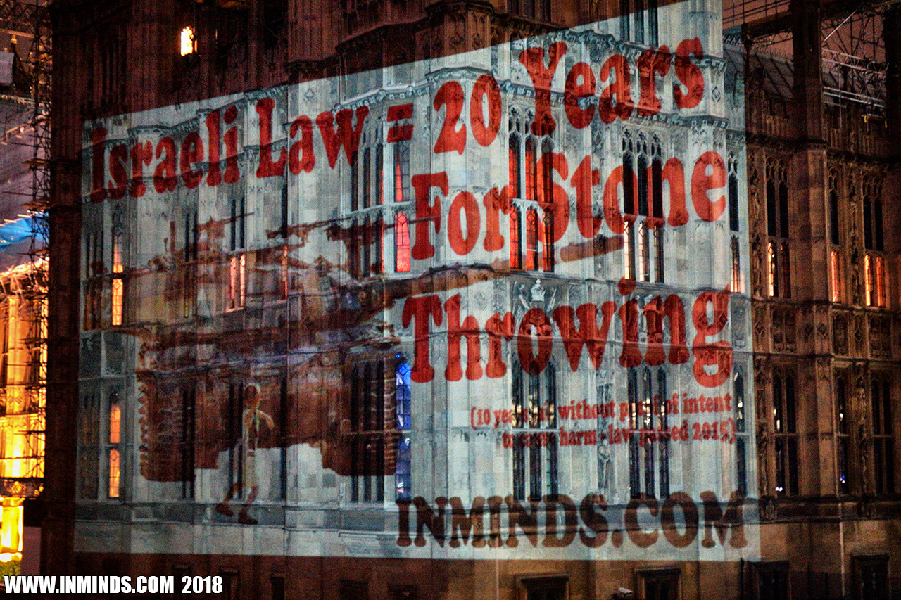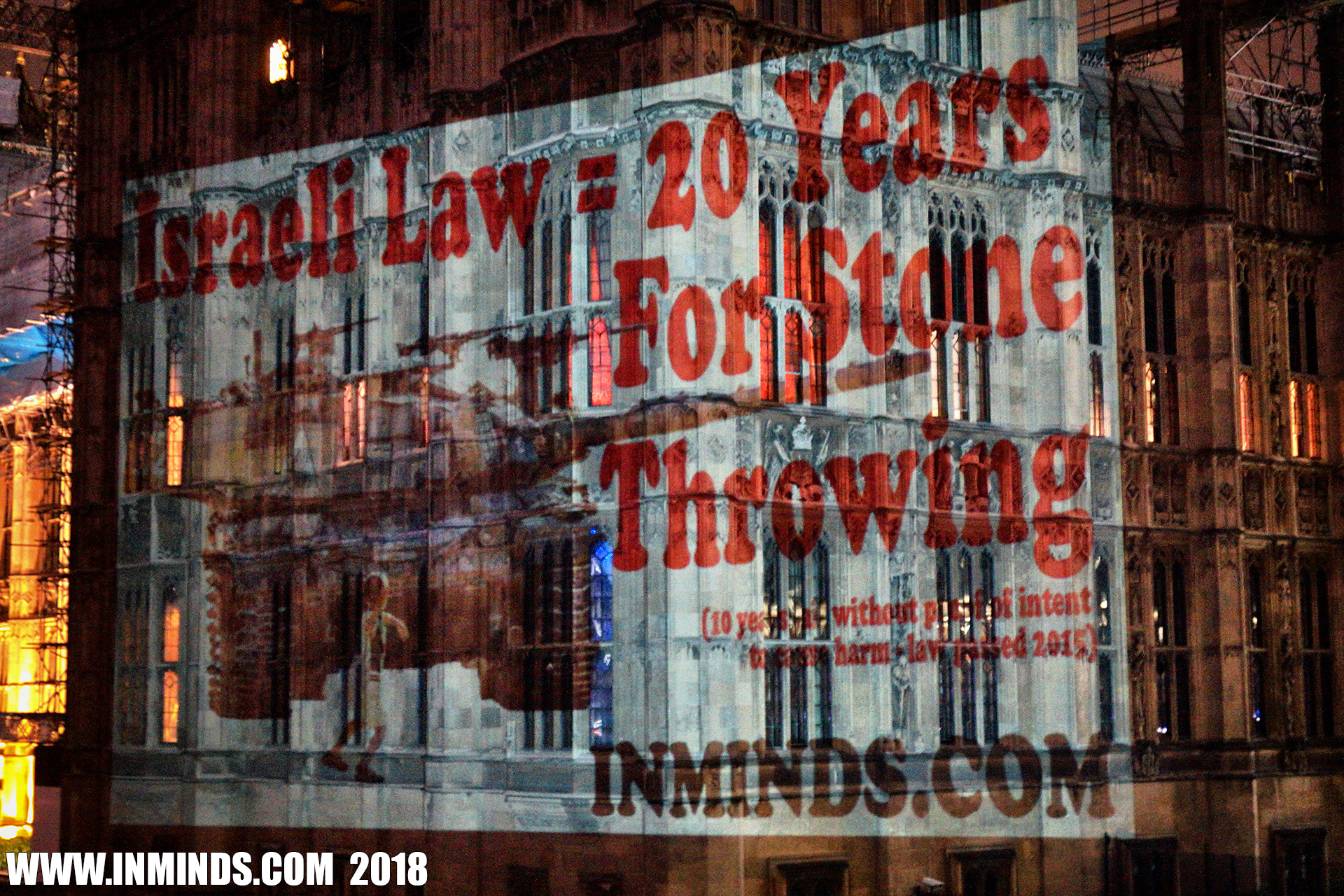 On the evening of Friday 26th January 2018, Inminds human rights group undertook a guerilla projection on the walls of the Palace of Westminster, to highlight the plight of Palestinian child prisoners in Israel dungeons.