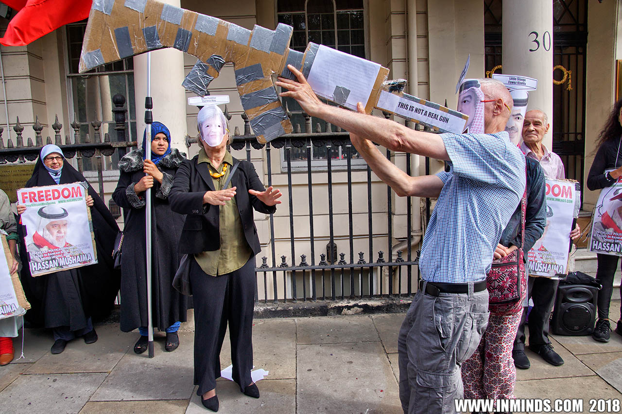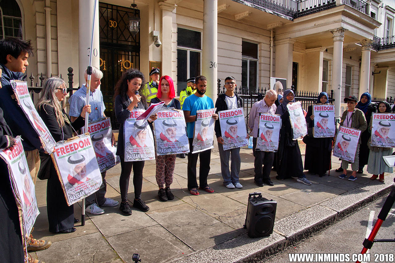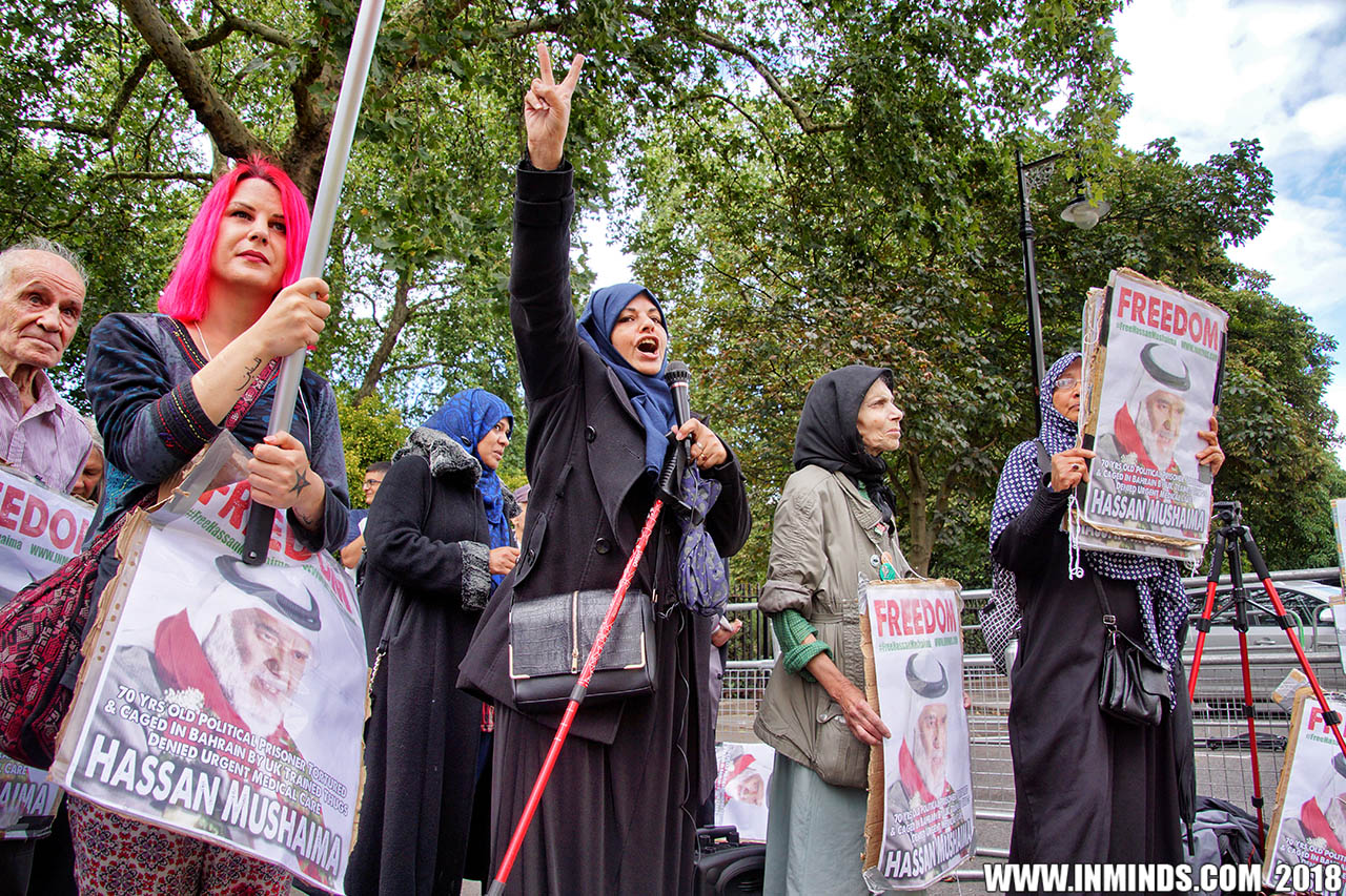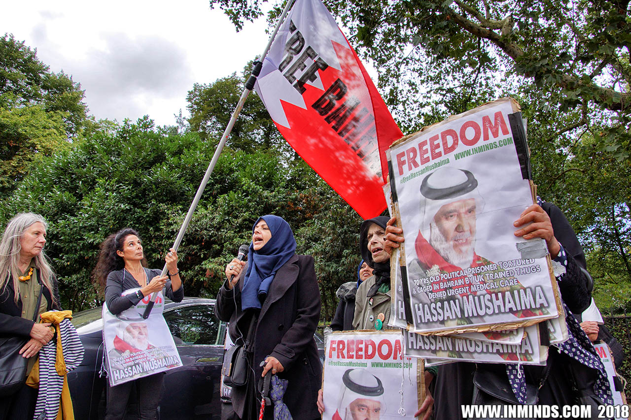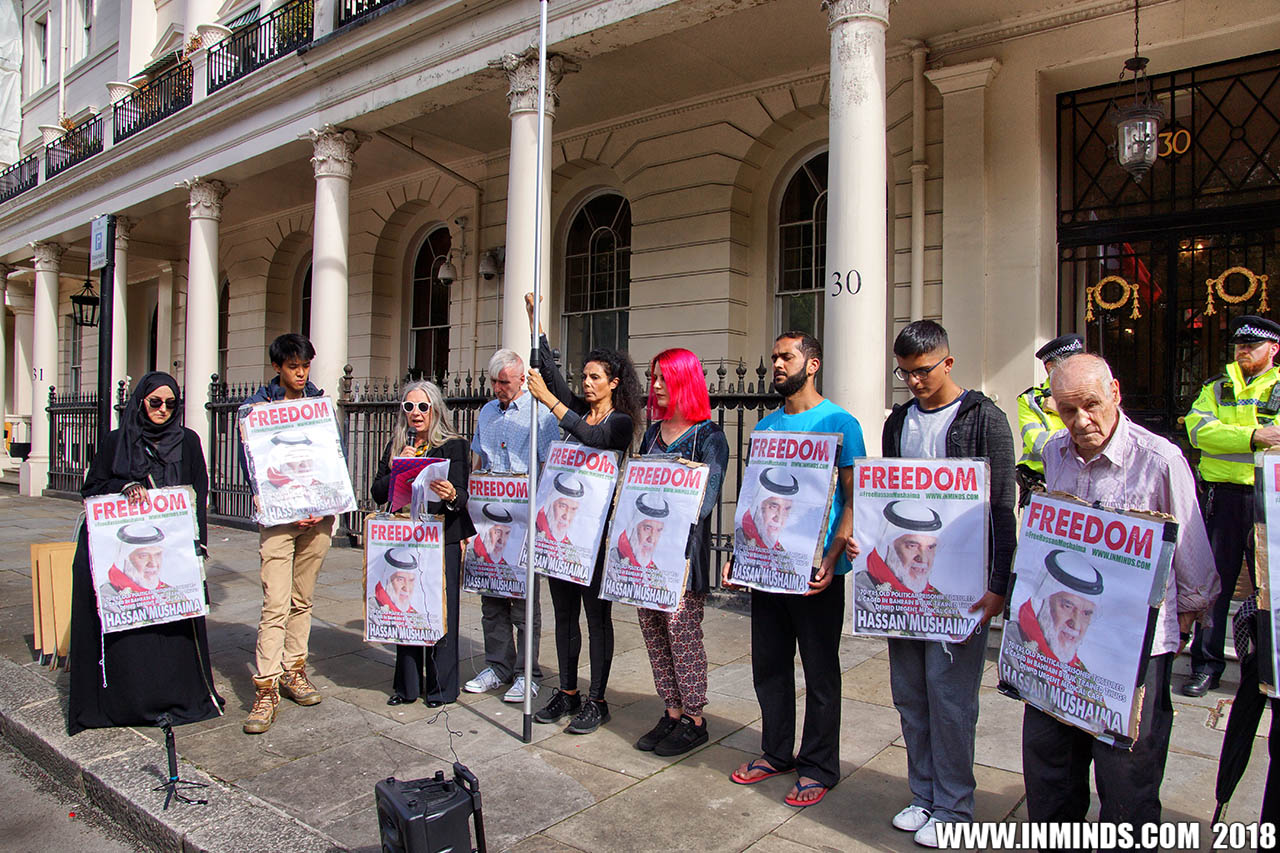 inminds 15 August 2018  Inminds vigil outside bahrain embassy demands MET police arrest perpetrators from embassy who attacked hunger striker Ali Mushaima #FreeHassanMushaima #الأستاذ_حسن_مشيمع