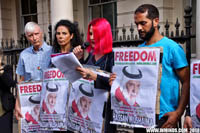 Freedom for Hassan Mushaima Inminds vigil outside bahrain embassy demands MET police arrest perpetrators from embassy who attacked hunger striker Ali Mushaima #FreeHassanMushaima #الأستاذ_حسن_مشيمع