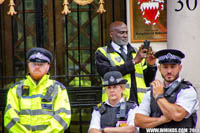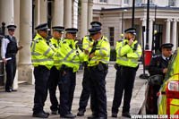 In the last 15 minutes of the protest the police succumbed to pressure from the Bahrain embassy and insisted on moving us across the road away from the embassy. They had received complaints from the Bahraini embassy as to why they were allowing us to protest outside their embassy, where as in Bahrain the regime wouldn't allow such things - the police would probably shoot the protestors. To force us to move the police unbelievably imposed conditions on our protest under section 14 of the Public Order Act 1986. We were not a threat to anyone, this was a shameful abuse of the law in order to appease a dictator. Once across the road they insisted we stay in the pen they had created for us, this we refused point blank - we were not entering their cage.