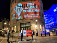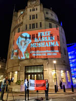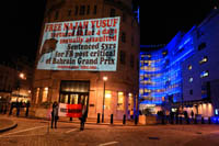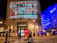 Guerilla projection on BBC HQ in solidarity with #FreeHassanMushaima