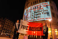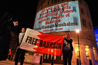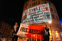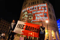 Sayed Ahmad AlWadaei was identified by the regime as one of those protesting against the London visit of the King of Bahrain. Within hours of the protest, the regime took revenge. The family of his wife Duaa – her mother, her brother and her cousin – were straight away abducted by British trained Bahraini security forces and tortured until they were coerced into signing false confessions. With no evidence presented other than the fabricated confessions they were convicted. This was two years ago, today they are still languishing in a Bahraini dungeon. Duaa’s hunger strike was for her mother Hajer Mansoor.