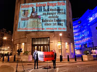 A few weeks ago, mother of two Duaa Alwadaei temporarily joined Ali Mushaima on hunger strike outside the Bahrain Embassy. Her demand is for the Bahraini regime to disclose the medical report of her imprisoned mother Hajer Mansoor, provide adequate medical care for her, and end its acts of retaliation against her and Duaa's imprisoned brother Seyed Nizar. Both were imprisoned as revenge for Duaa Alwadaei's husband’s peaceful activism in the UK exposing Bahraini regimes crimes against the people.