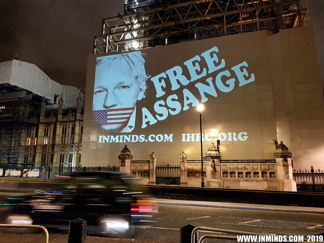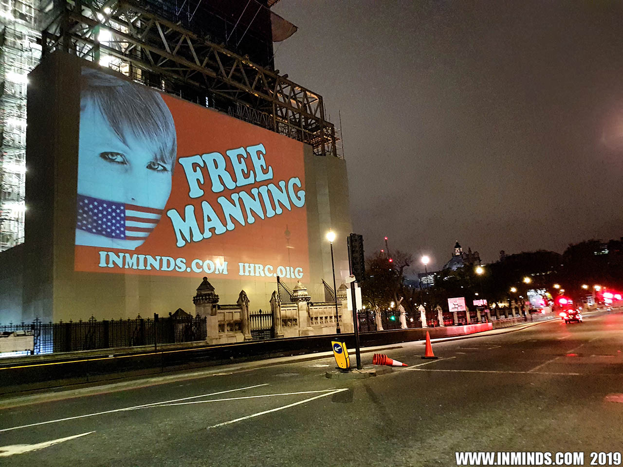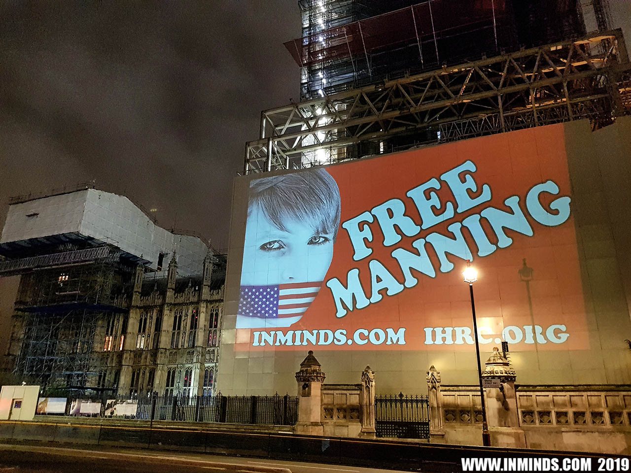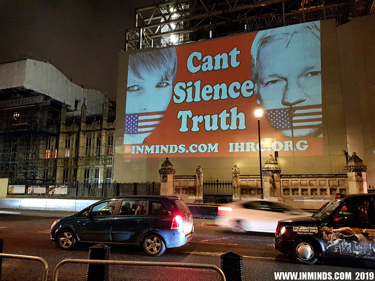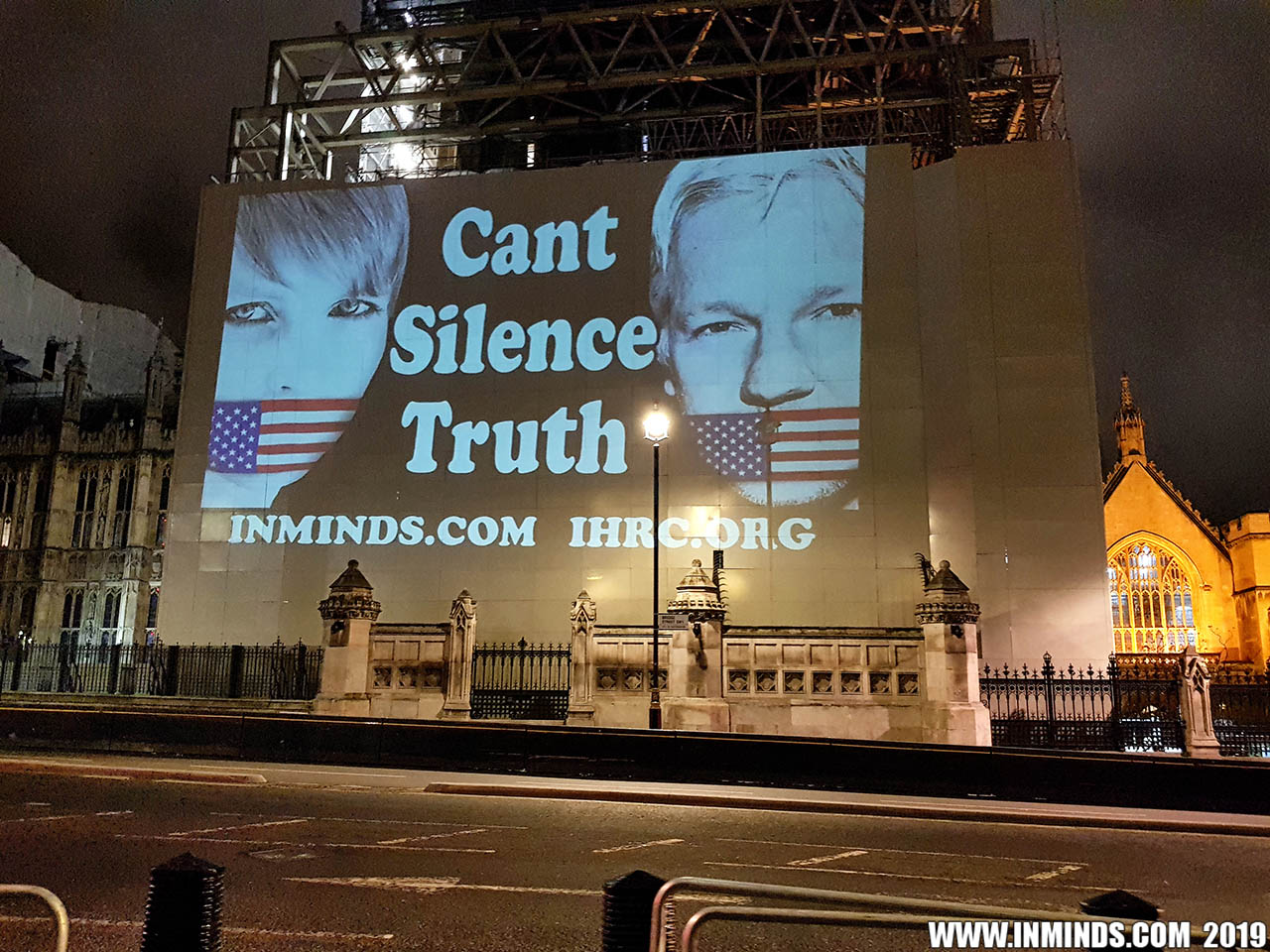 On Friday 26th April 2019 Inminds Human Rights Group along with the Islamic Human Rights Commission carried out a guerilla projection on the walls of the Palace of Westminster, the seat of the British government, to demand freedom for WikiLeaks founder Julian Assange and whistleblower Chelsea Manning.