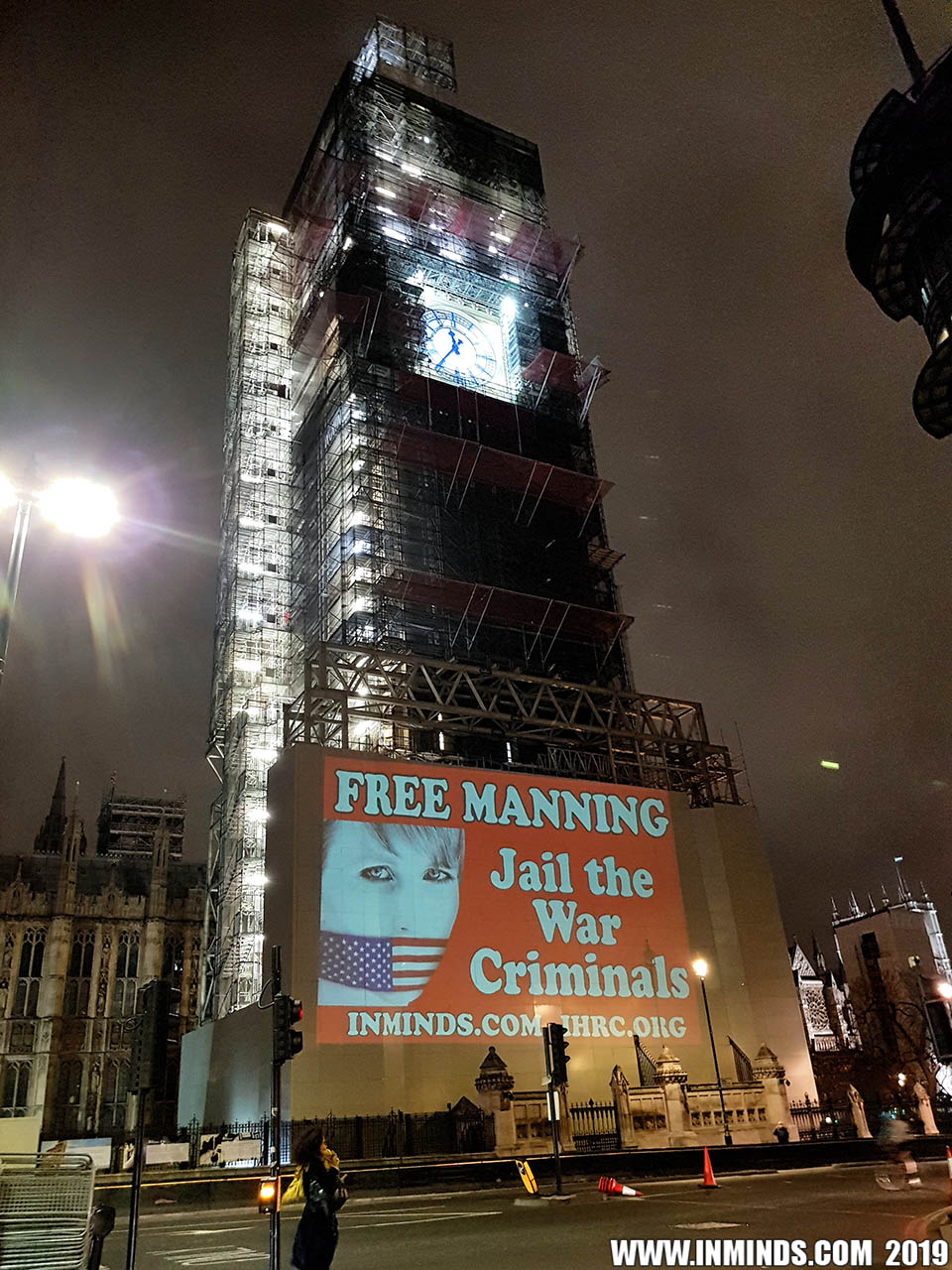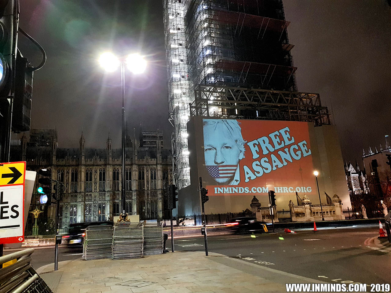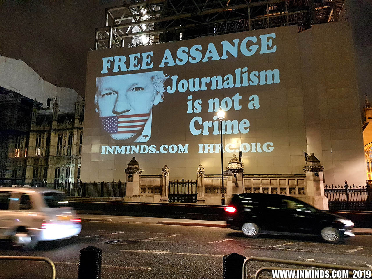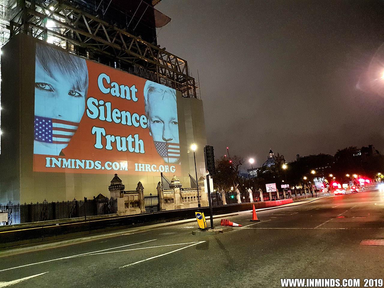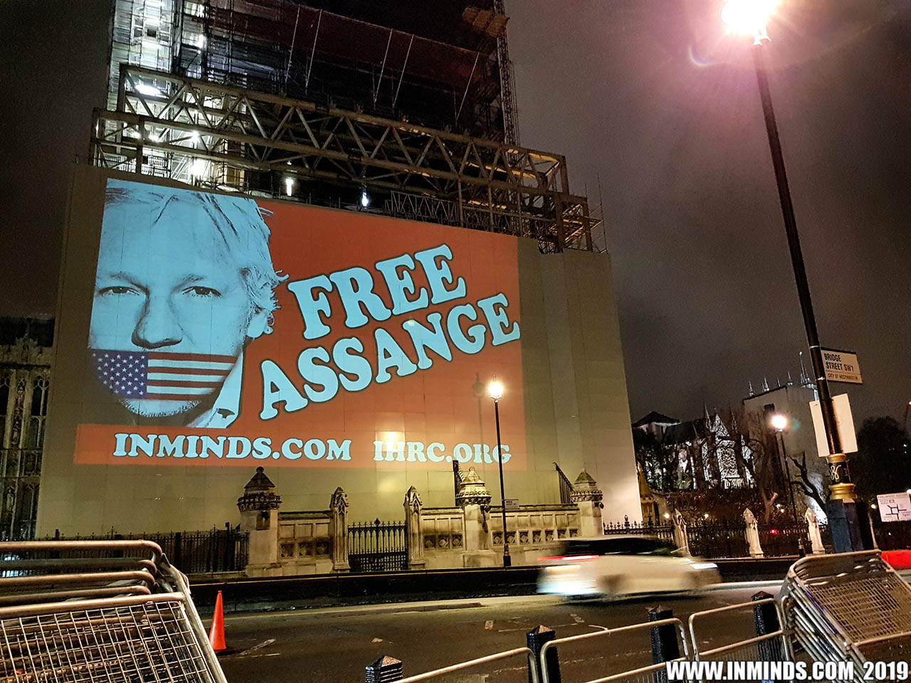 On Friday 26th April 2019 Inminds Human Rights Group along with the Islamic Human Rights Commission carried out a guerilla projection on the walls of the Palace of Westminster, the seat of the British government, to demand freedom for WikiLeaks founder Julian Assange and whistleblower Chelsea Manning.