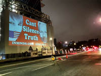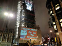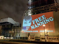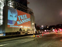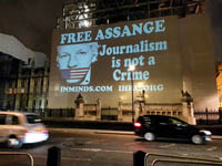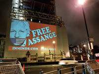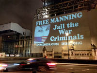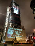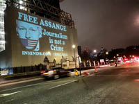 Messages displayed included: "Free Assange - Journalism is not a crime", "Free Manning - Jail the war criminals" and "Can't silence Truth".