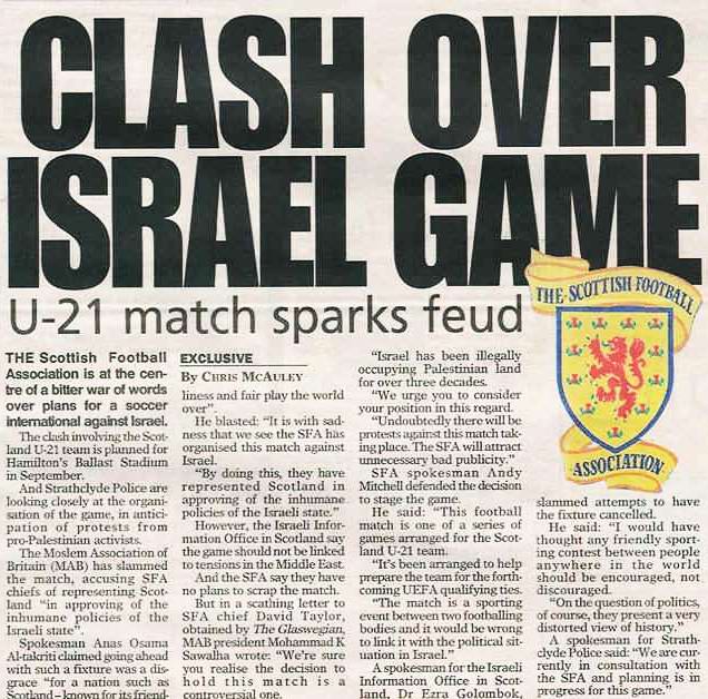 For Additional Information: Sports Boycott Event: Scotland under-21 Vs Israel under-21