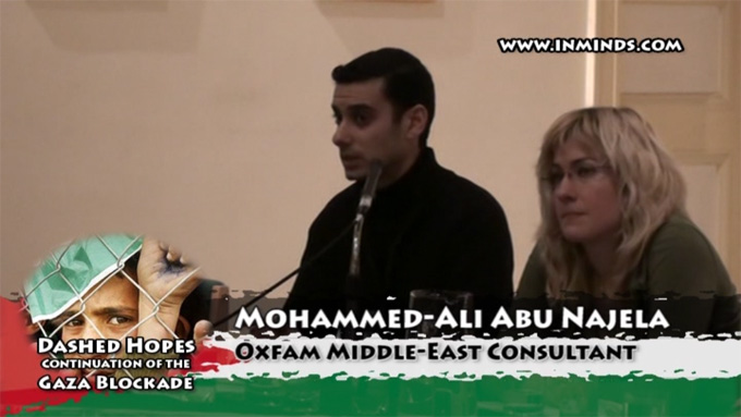 Mohammed-Ali started by giving a brief history of the Gaza blockade. He then went through the finding of the report: only 20% of food is getting through the blockage compared to what used to enter Gaza. The UN determined that 68,000 home units need to be constructed for the people that were left homeless following Israel's 2008 'Operation Cast Lead' attack on Gaza, but only 11% of construction material is making it through the Israeli blockage - 715 truckloads a month compared to the required 670,000 truckloads. Having been born and raised in Gaza, Mohammed-Ali, gave personal insights of what the facts and figures in the report translate to for the ordinary people in Gaza: "Gazaans have to live with 10 hours electricity blackout everyday, which means you cant do anything for 10 hours.. Very few people have constant access to water, more than 60% of the Gaza population don't have such access - some only have access to water a few hours a week.. The Israeli government says we don't allow particular materials to come in to Gaza because it might be used for manufacturing weapons.. personally I don't understand how pasta can be used to manufacture a rocket".