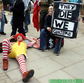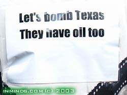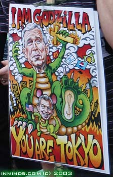 "Drop Bush Not Bombs" - Bush is shown wearing