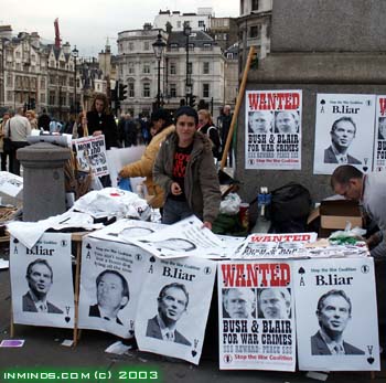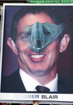 Blair with devils mark 666 on his forehead and caption "Terrorist"