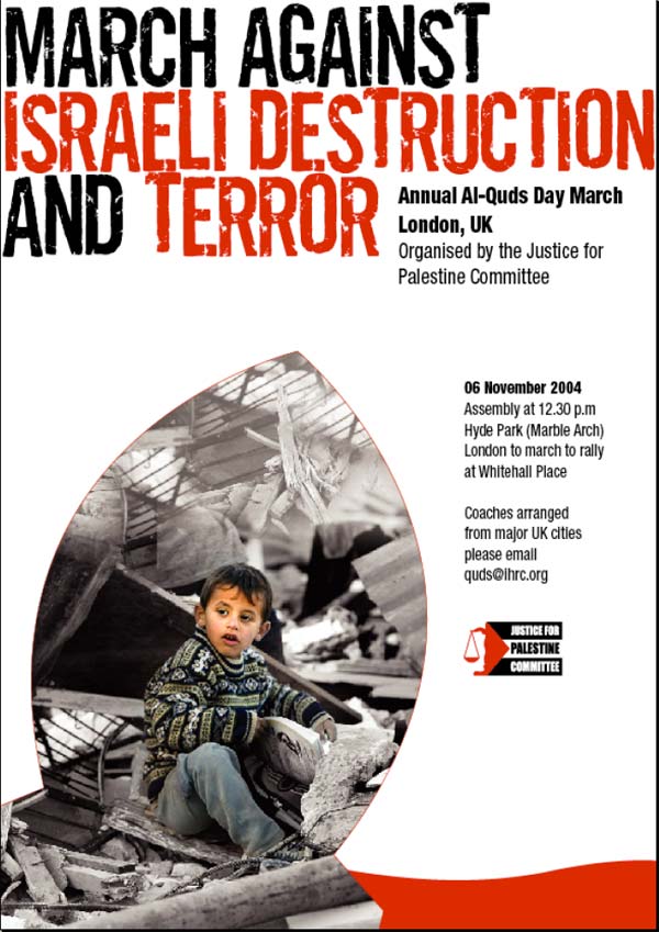 Also this coming Saturday is the annual Quds Day rally - remember Imam Khomeini dedicated it as a day for all Muslims to stand up for Palestine and against all oppressors around the world. It is important that we all show our solidarity that day. Sharon is slaughtering our brothers & sisters, sons & daughters, like animals. Just last week we saw the 13 year old school girl Iman al-Hams executed by an Israeli platoon commander - he put his gun to her small head and fired repeatedly - how can such atrocities end if we are not prepared to even give up one Saturday afternoon for her? Please show your support for Iman al-Hams and all the other victims of Israeli oppression, please join us next Saturday, it starts at Marble Arch at 12:30. [poster]